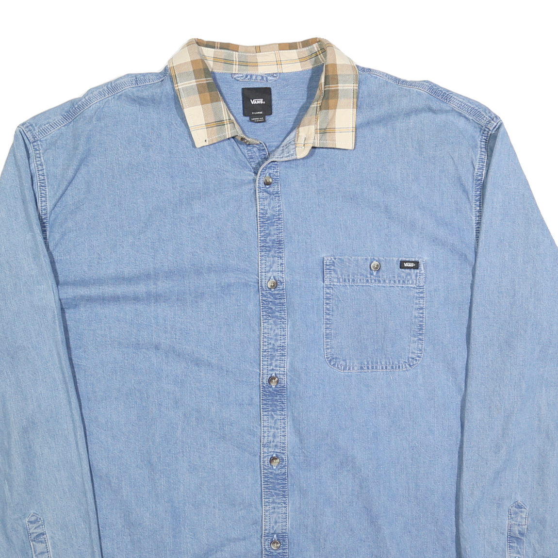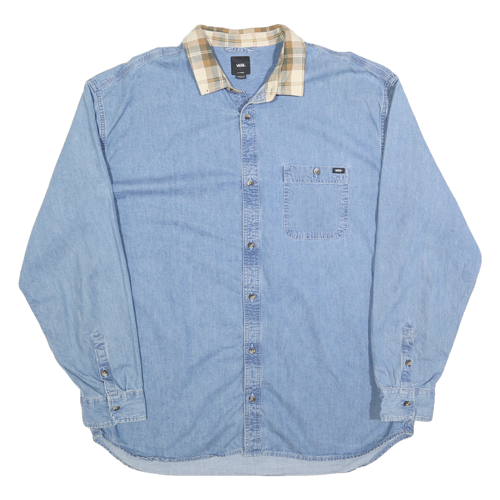 VANS Mens Blue & Beige Cotton Shirt XL Checked Collar Casual Long Sleeve