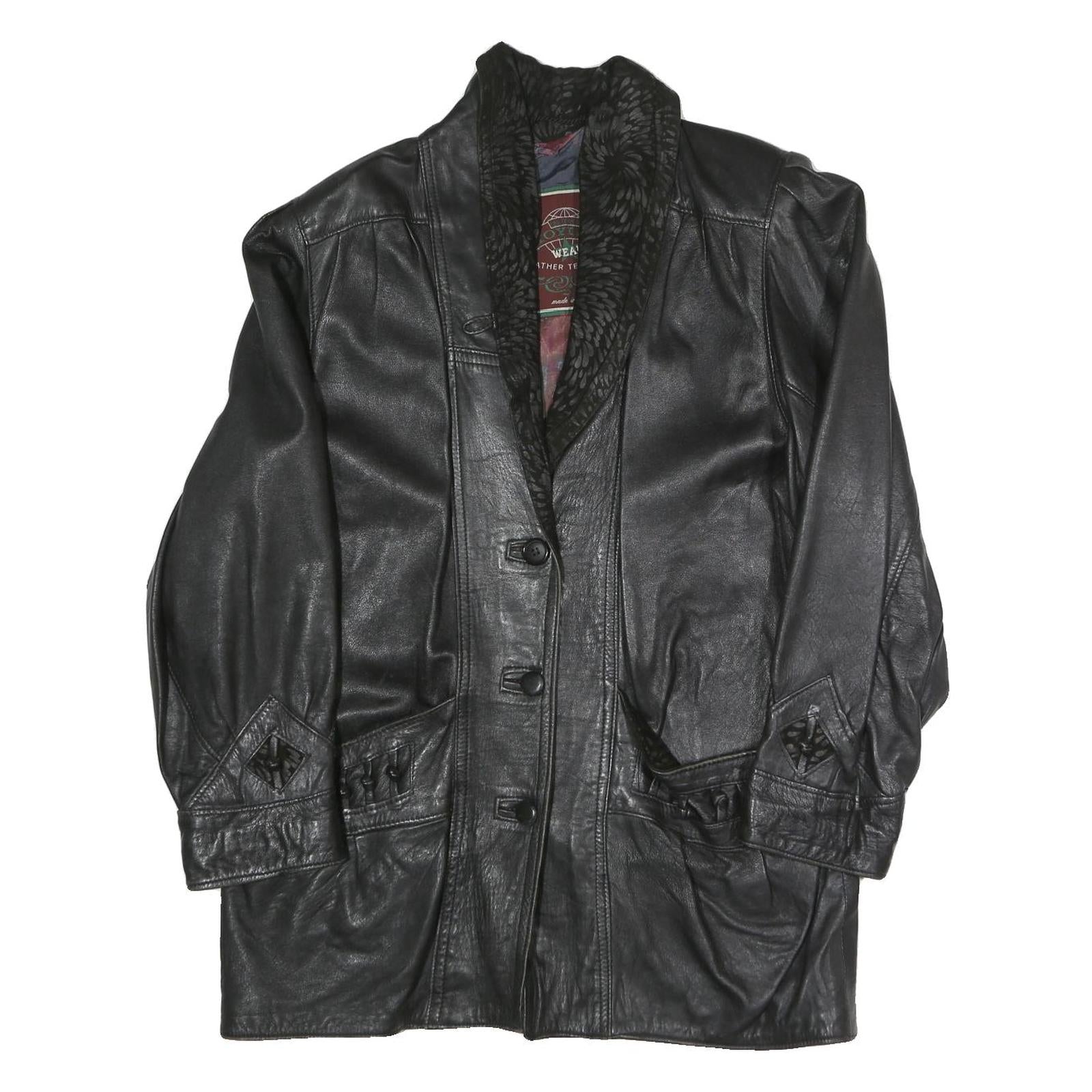 VERA PELLE Womens Black Faux Leather Button Jacket M Leather Plain Button