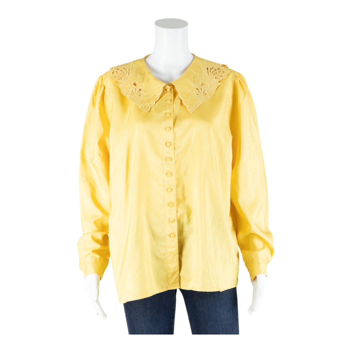 CANDA Womens Shirt Blouse Yellow Collared Long Sleeve 90s M