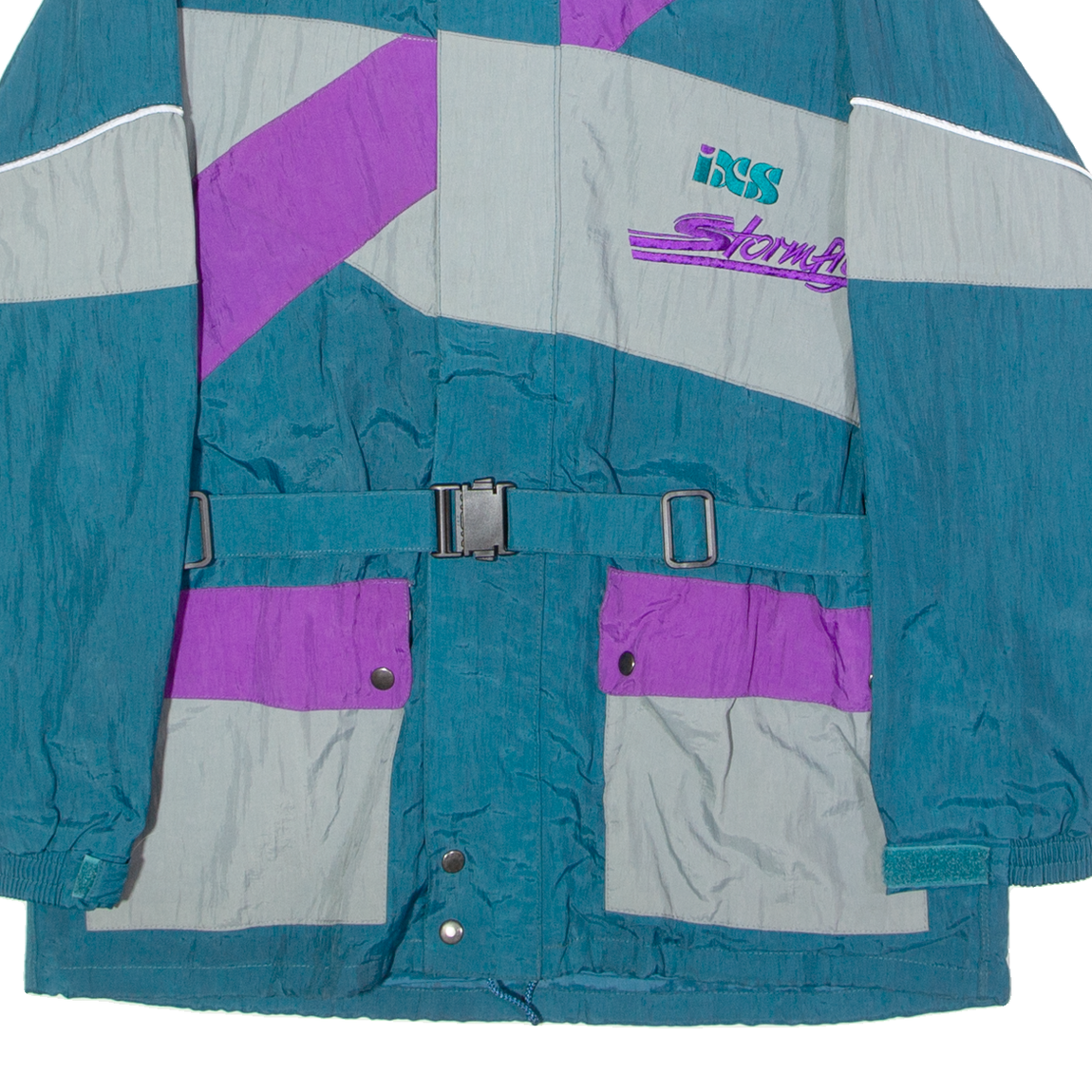 IXS Stormfly Mens Ski Jacket Green Nylon 90s Colourblock XS