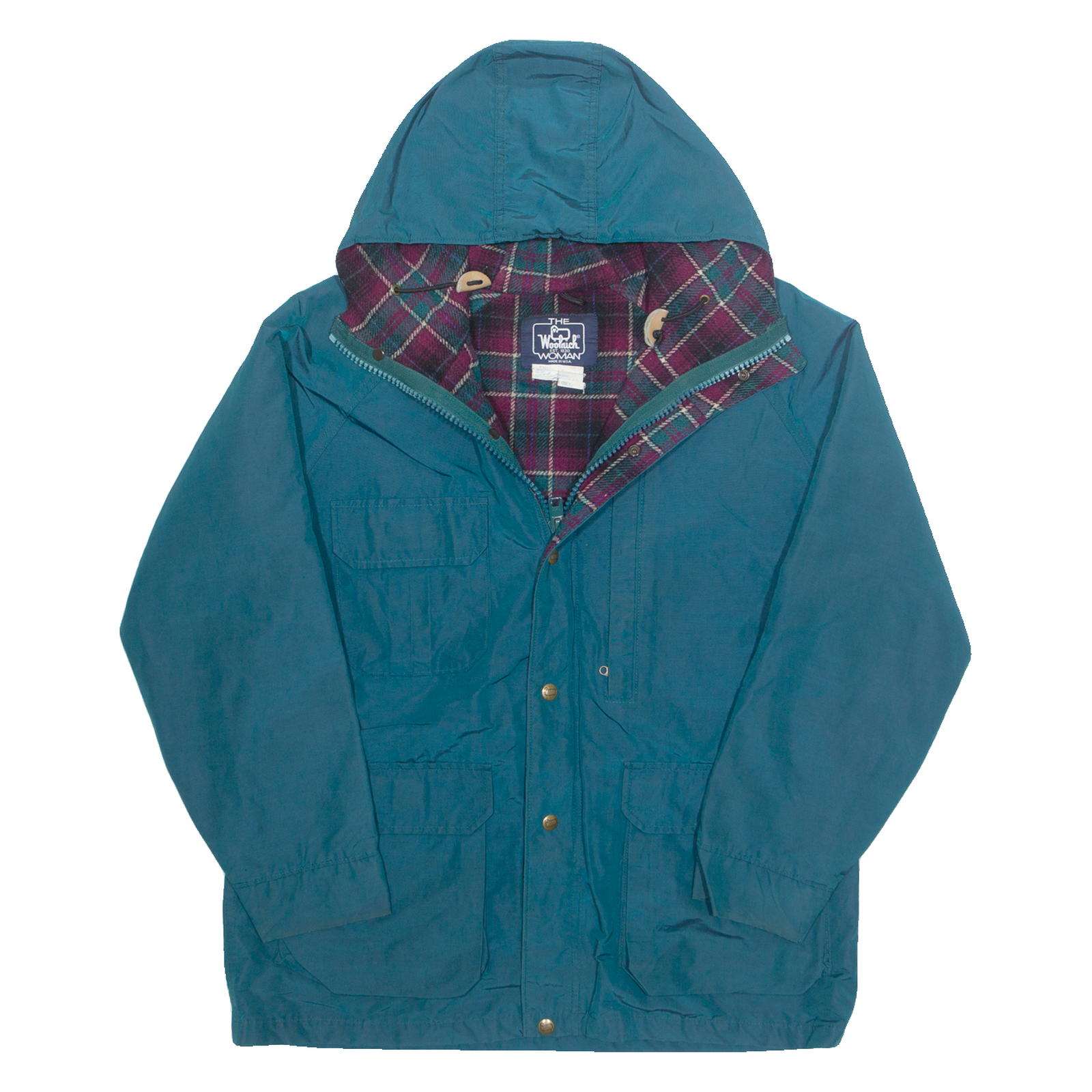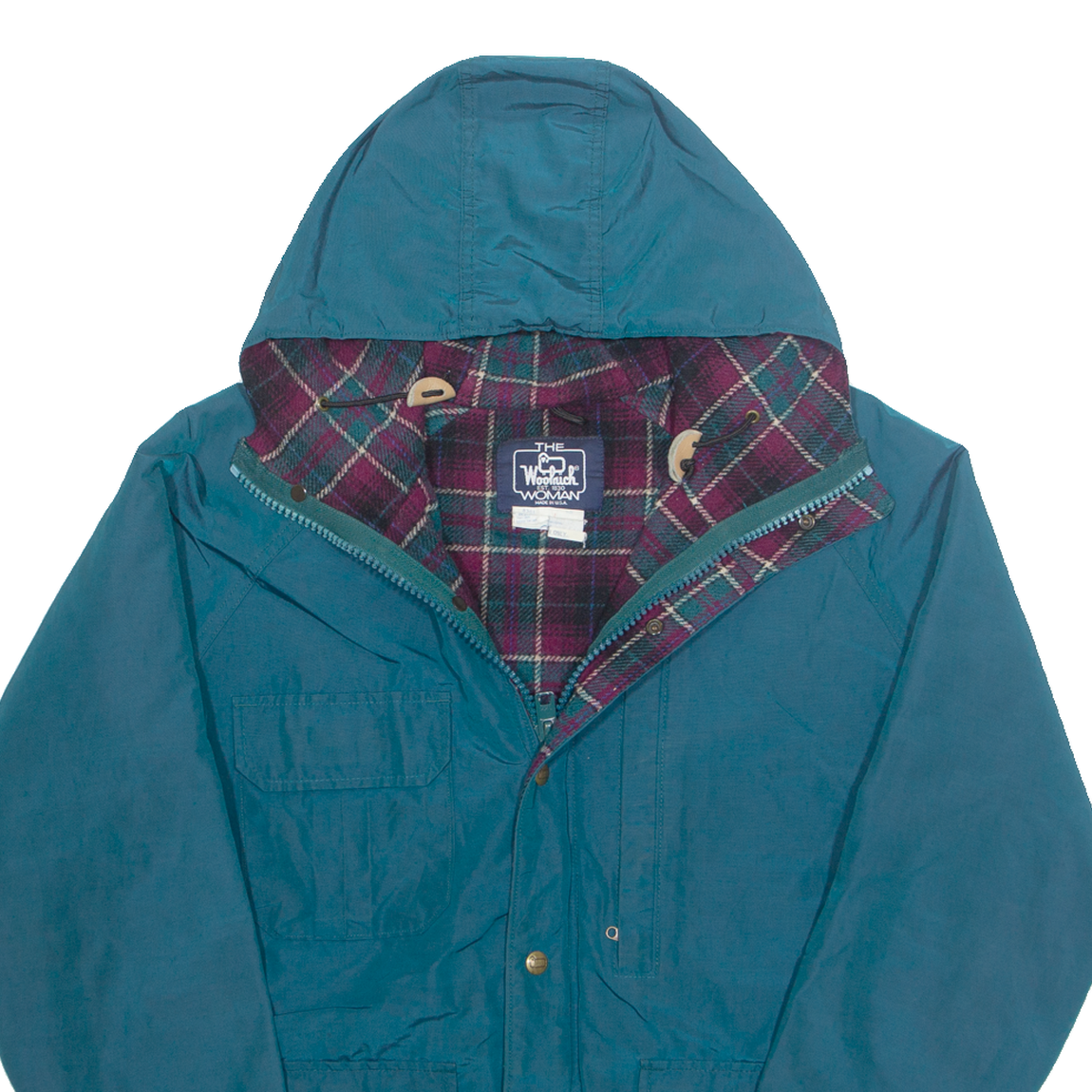 WOOLRICH Lined Womens Rain Jacket Blue 90s Hooded L