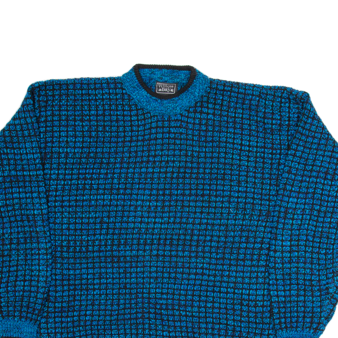 WILLOW BAY Mens Patterned Jumper Blue Check Tight Knit XL