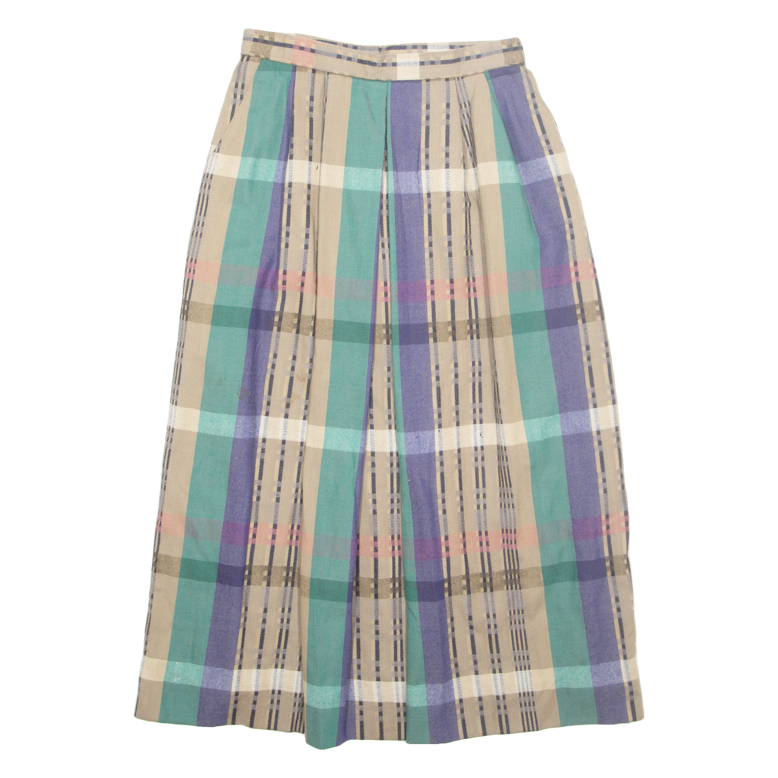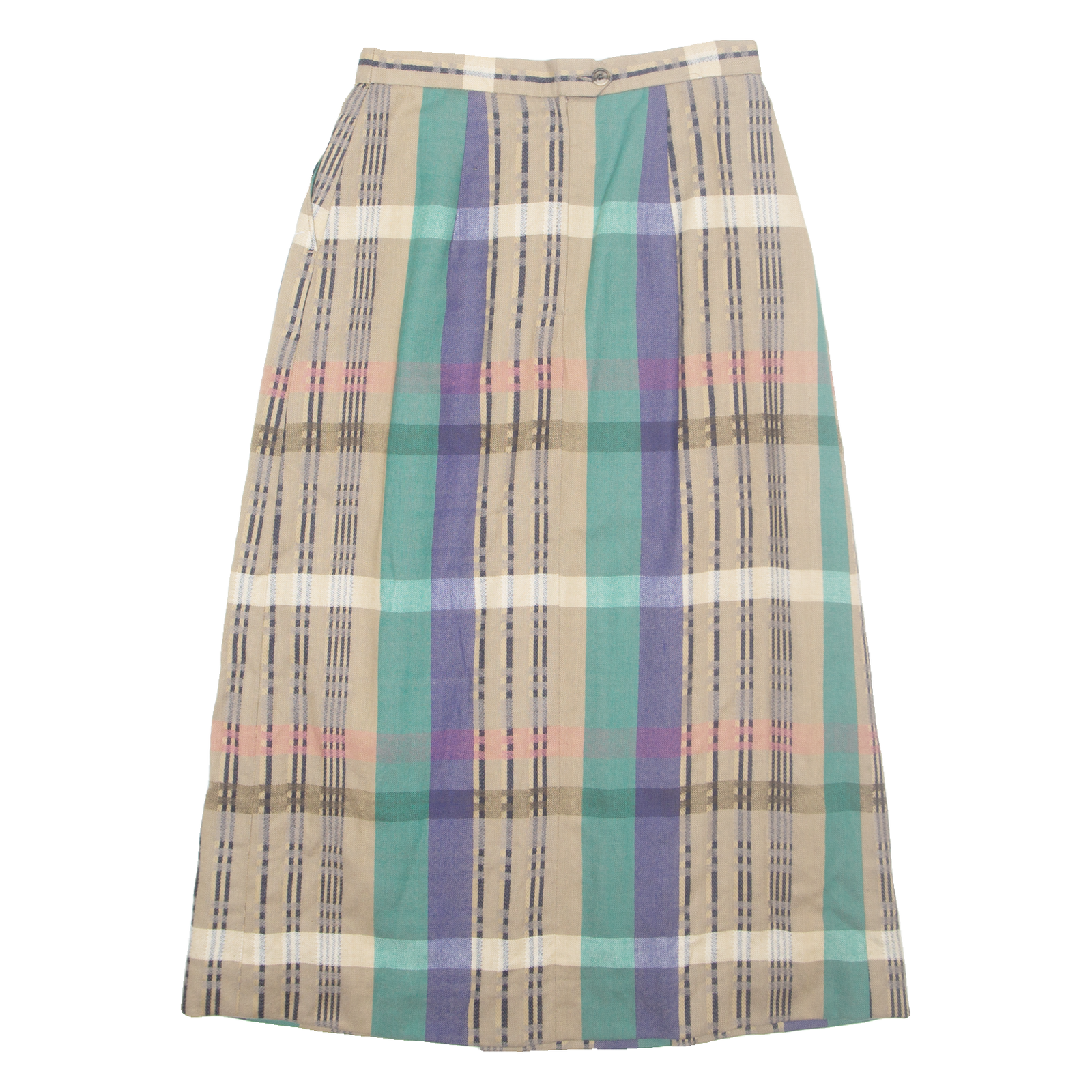 Womens A-Line Skirt Brown Midi Wool Check S