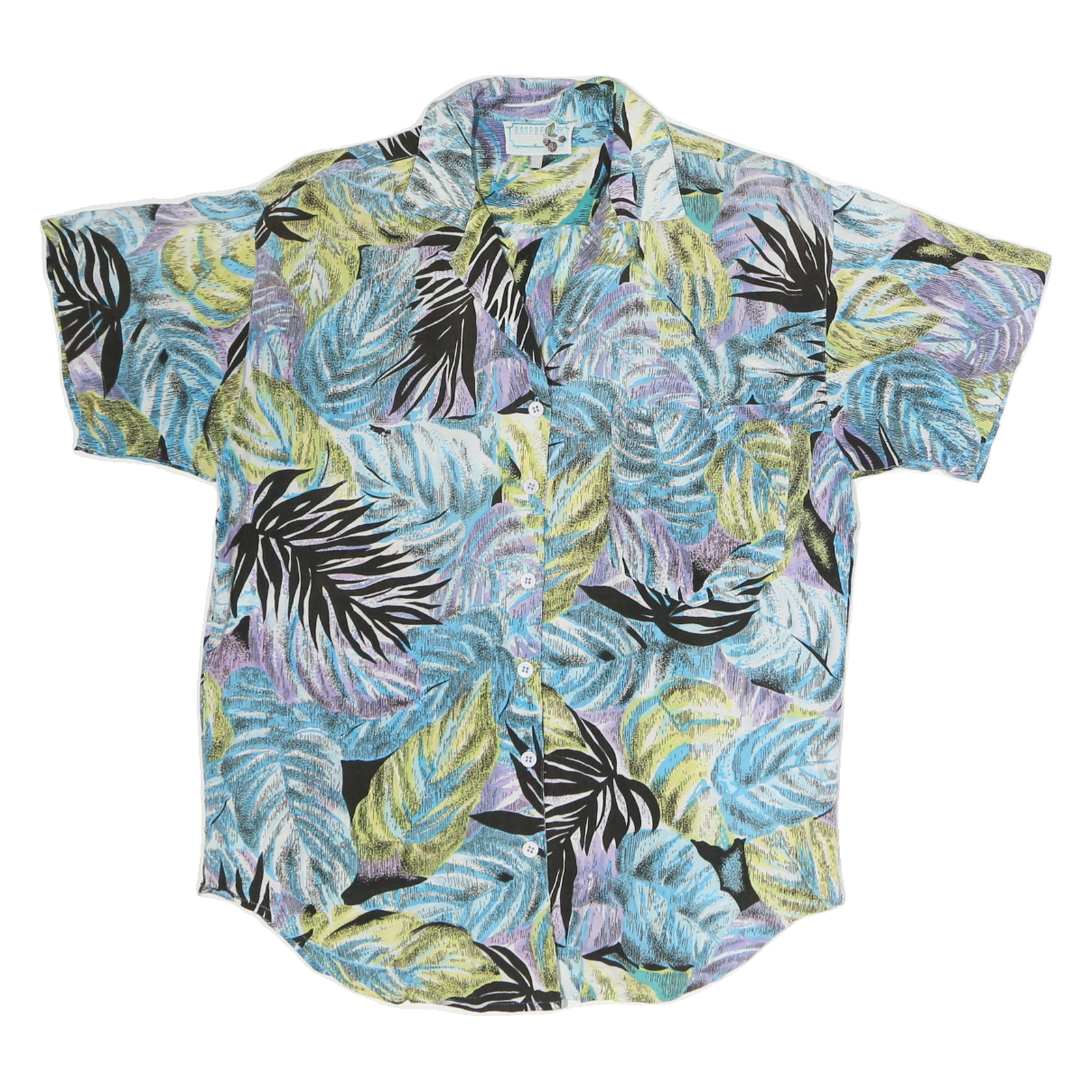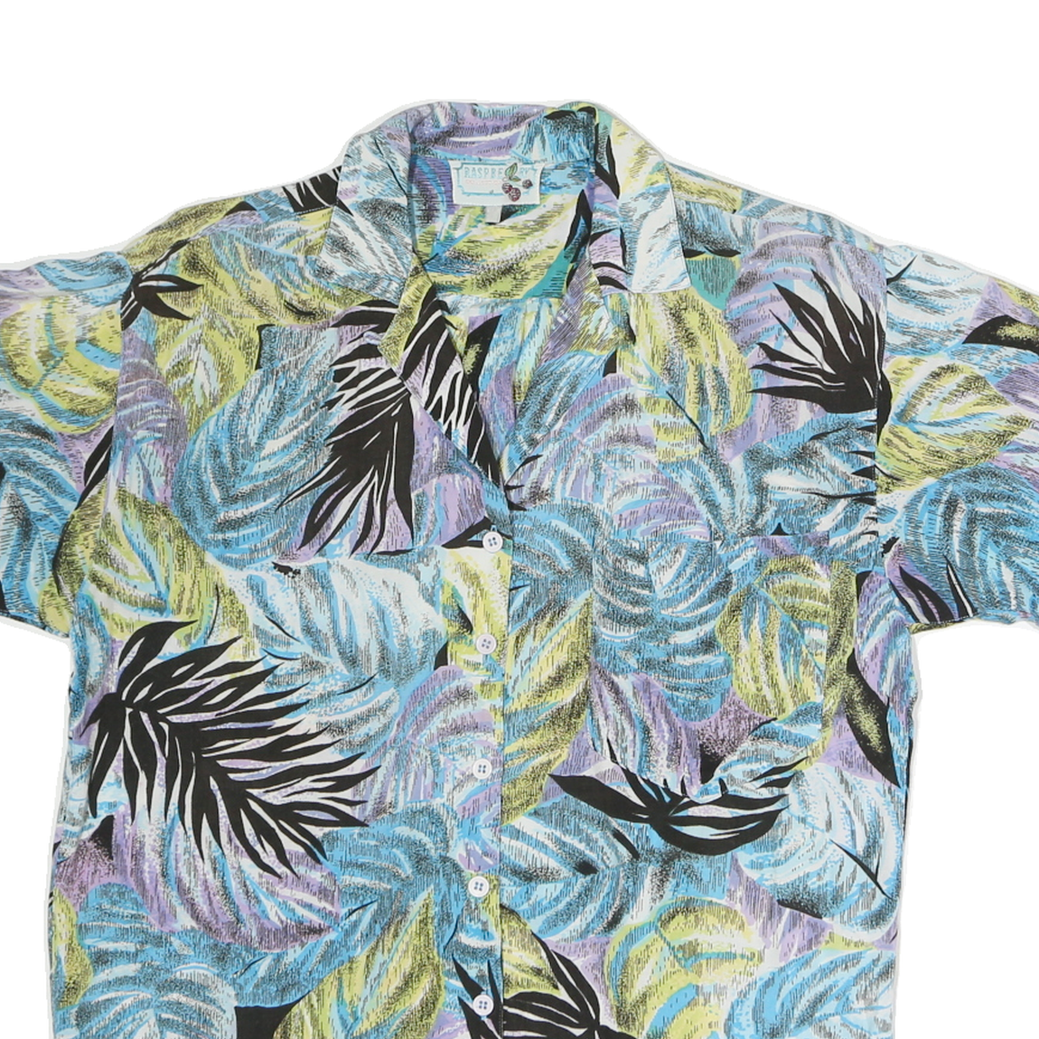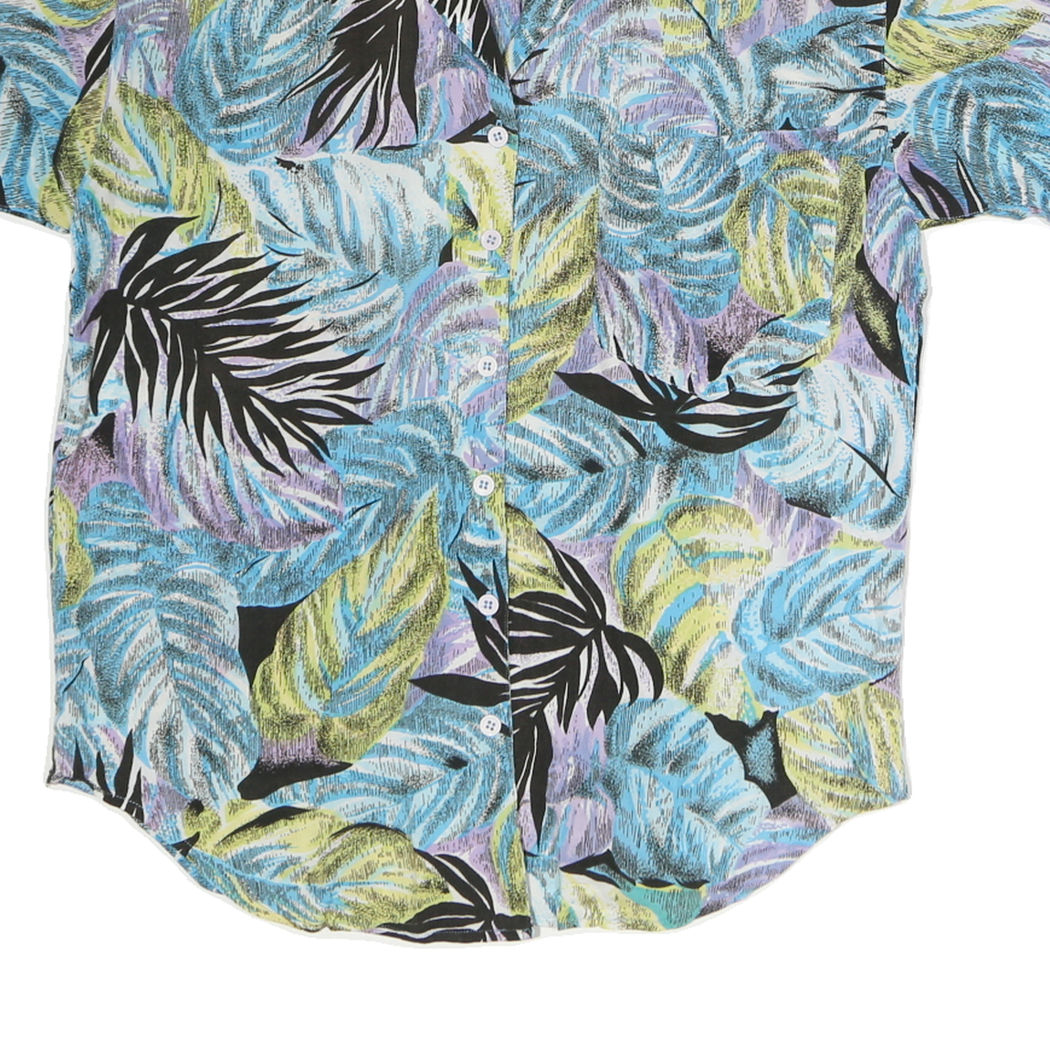 Womens Blue & Green Purple Pattern Shirt M Cotton Relaxed Short Sleeve Button