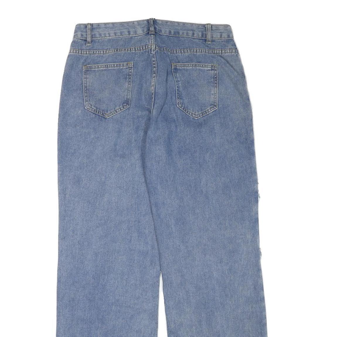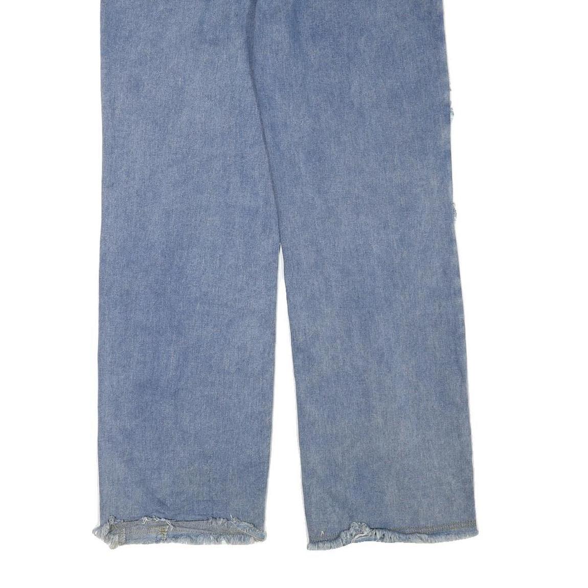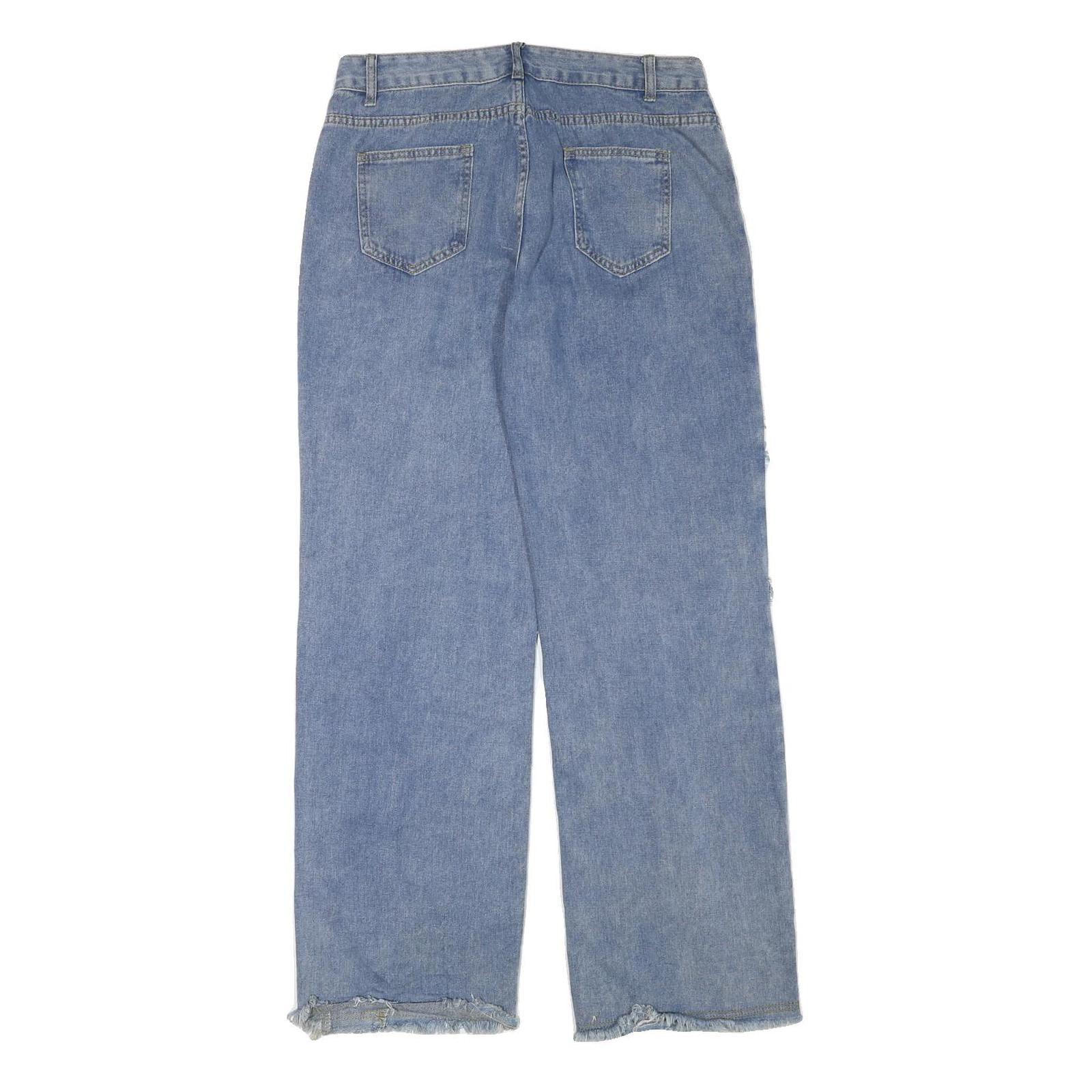 Womens Light Blue Relaxed Straight Denim Jeans W32 L31 Frayed Panel Detail Zip