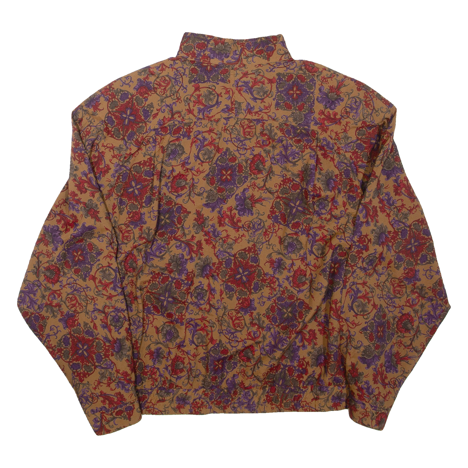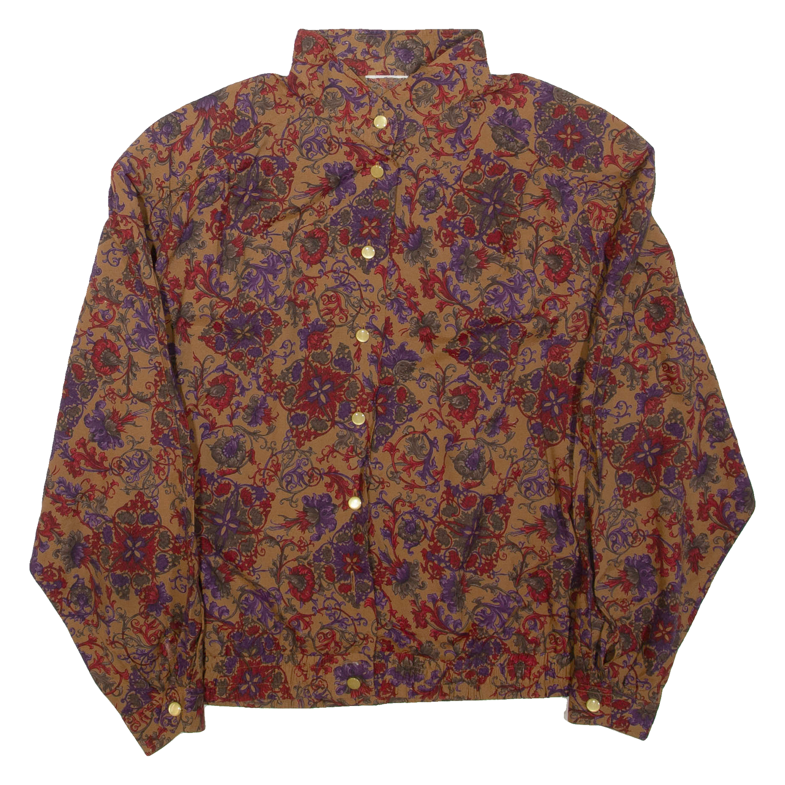 Womens Printed Blouse Brown High Neck Long Sleeve Floral XL