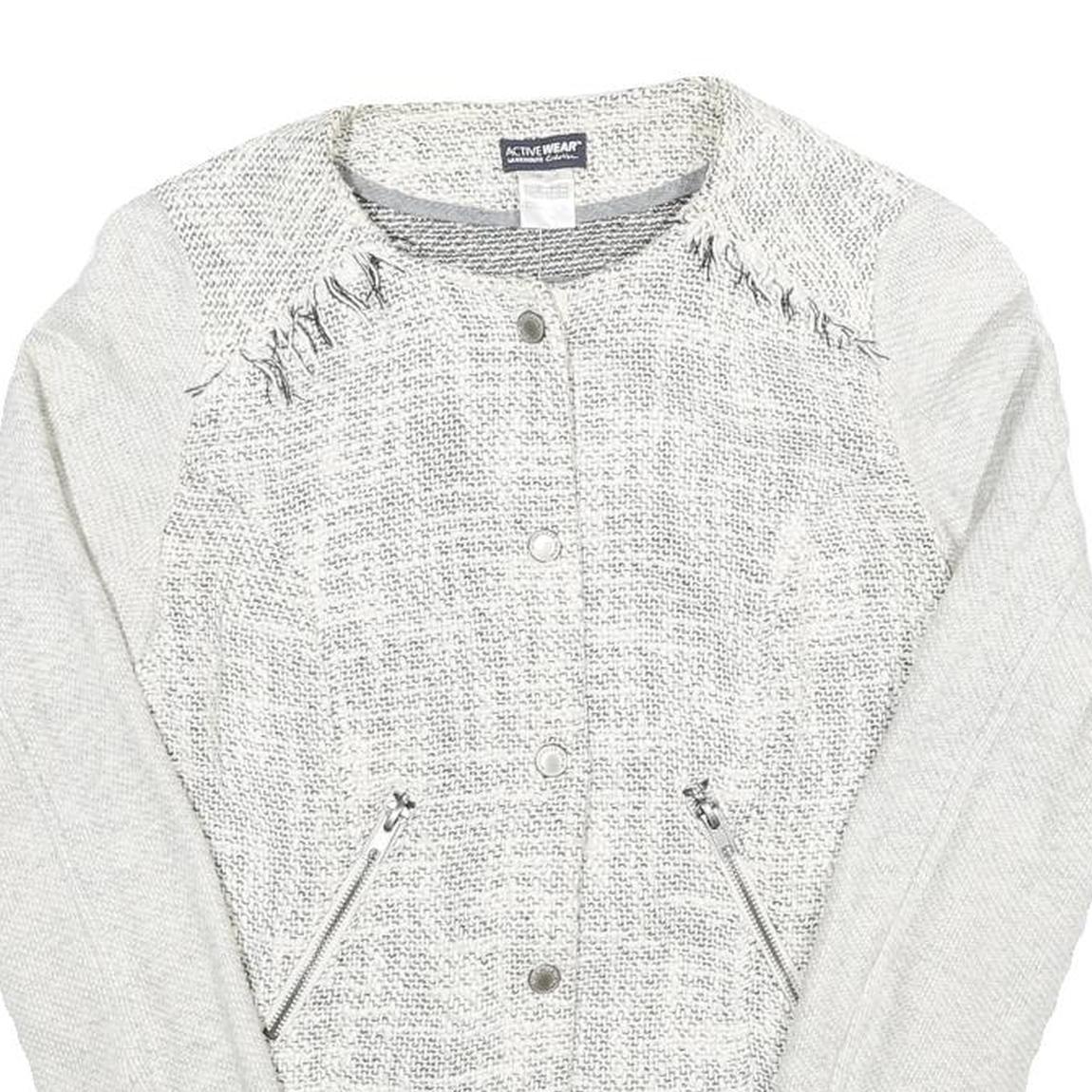 Womens White Textured Button Jacket UK 6 Polyester Blend Knit Classic Outerwear