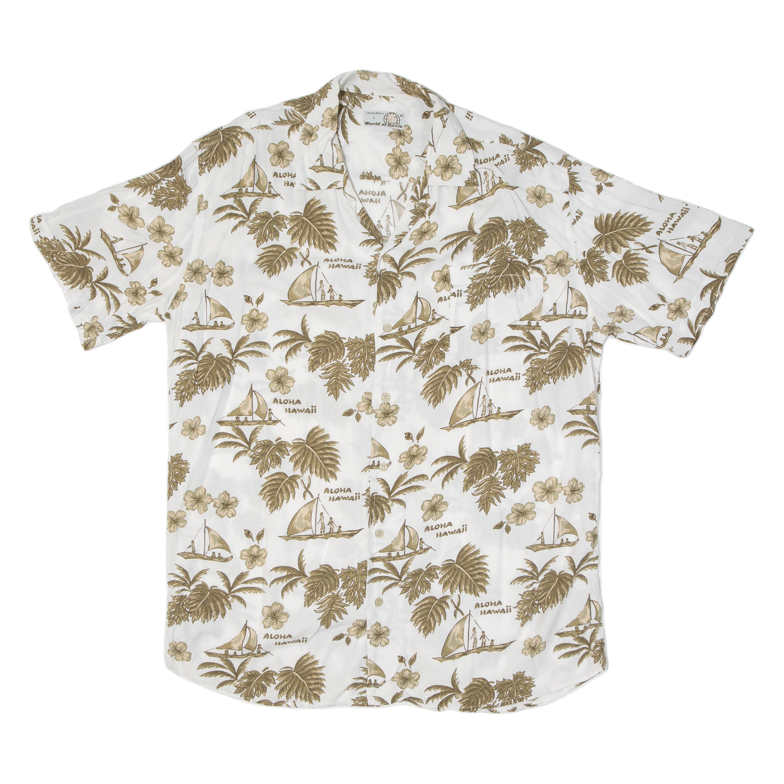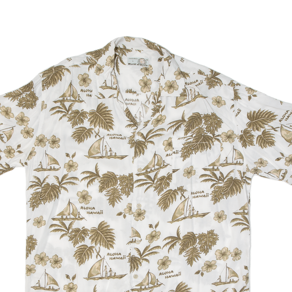 WORLD OF BASIC Mens Hawaiian Shirt White Crazy Pattern L