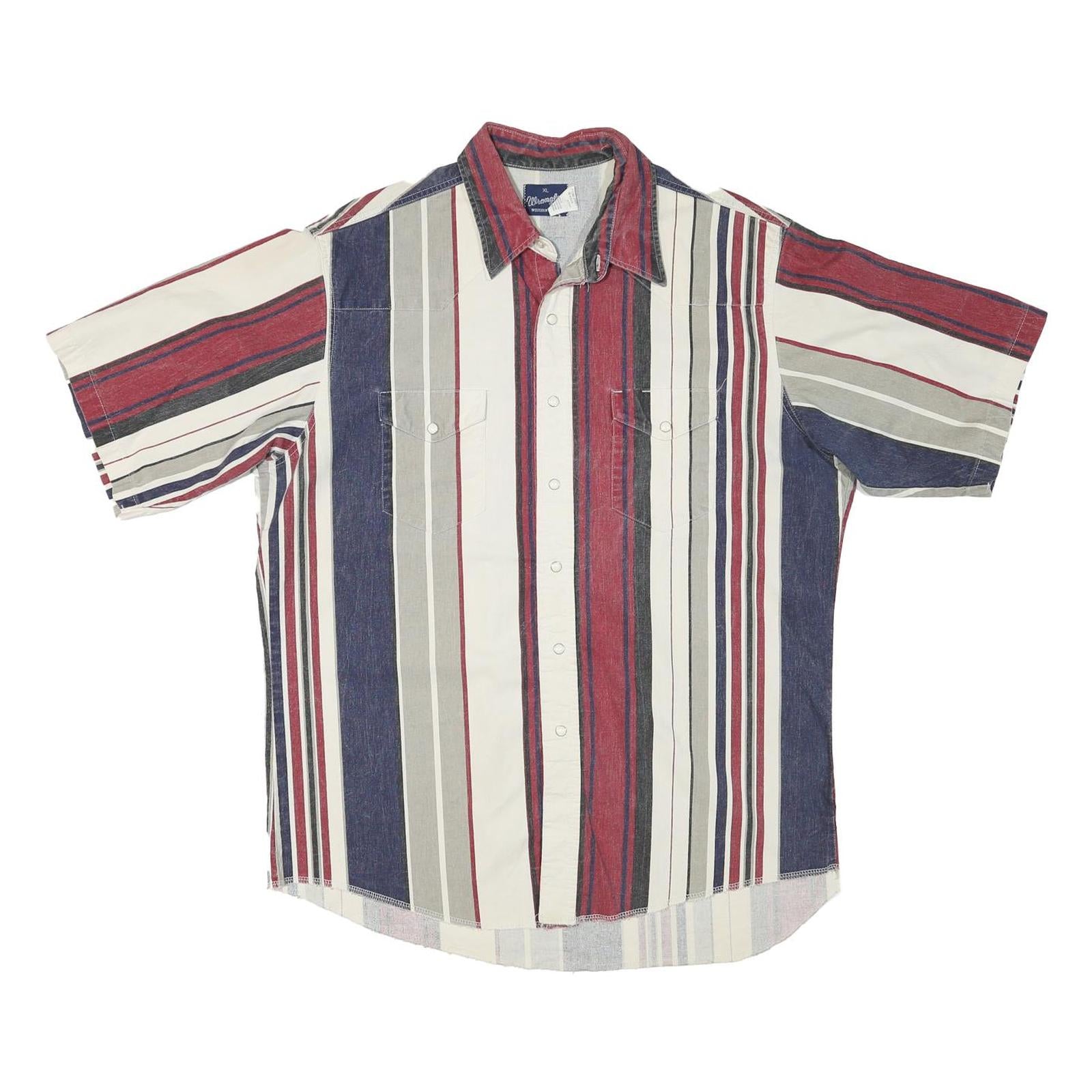 WRANGLER Mens Red & Blue Striped Shirt XL Cotton Blend Casual Summer