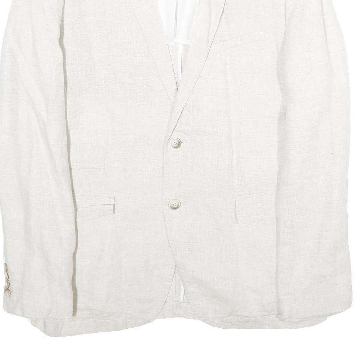 ZARA Mens White Casual Jacket L Woven Button Closure Classic Blazer Linen Look
