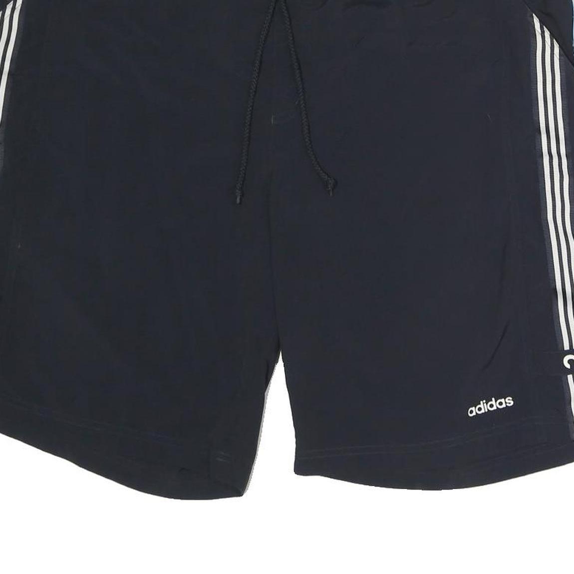 ADIDAS Mens Casual Shorts Black & Blue XL W38 Polyester Plain Drawstring Pockets