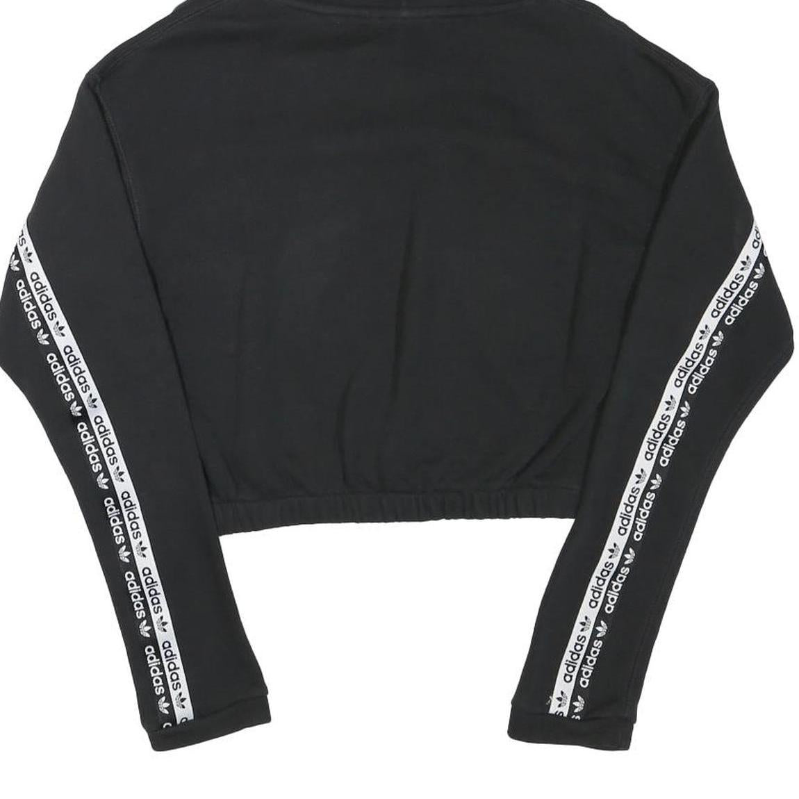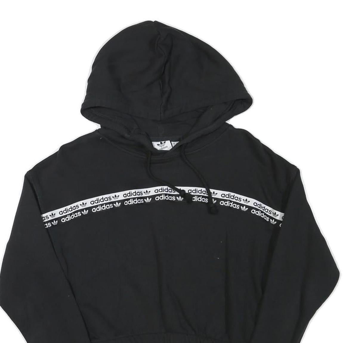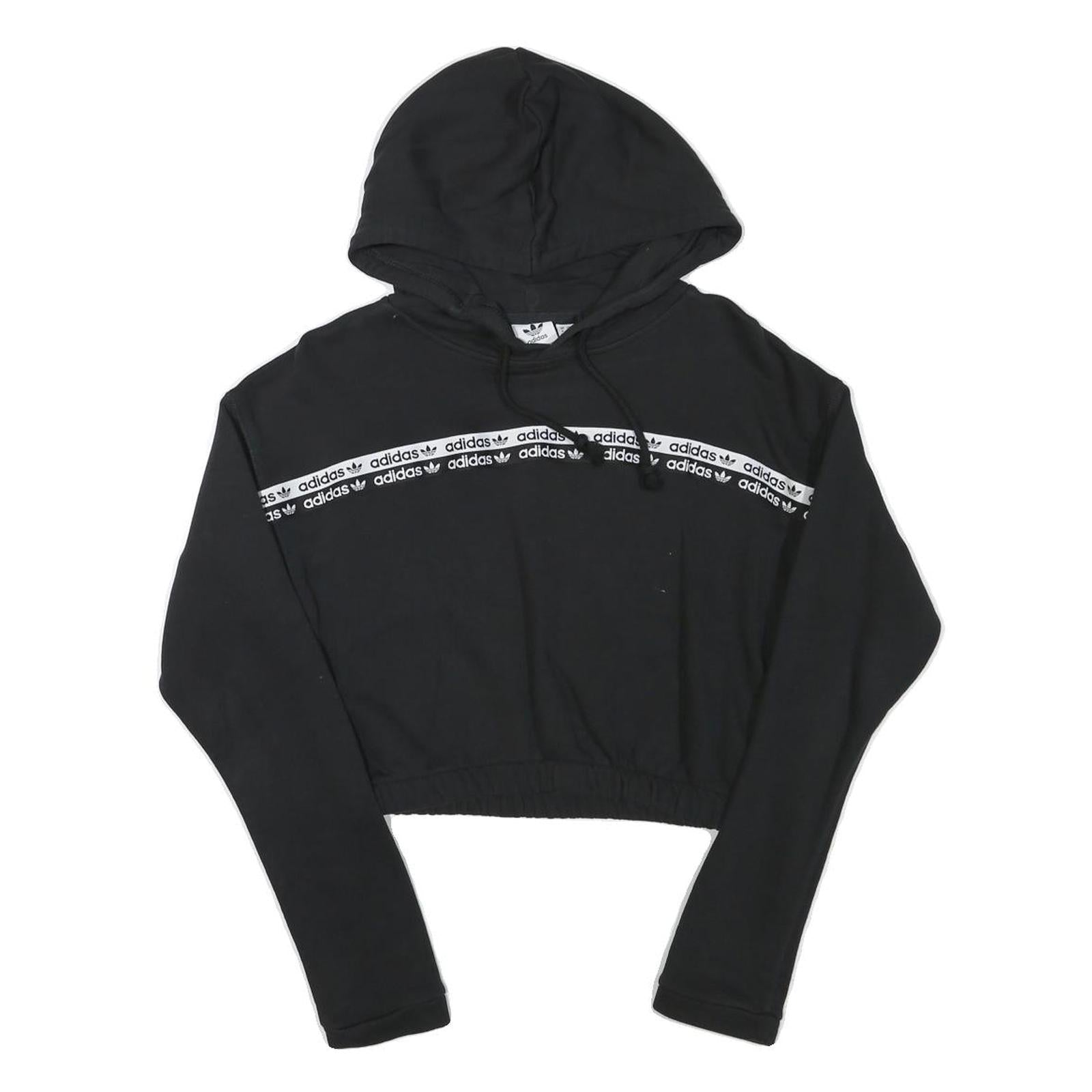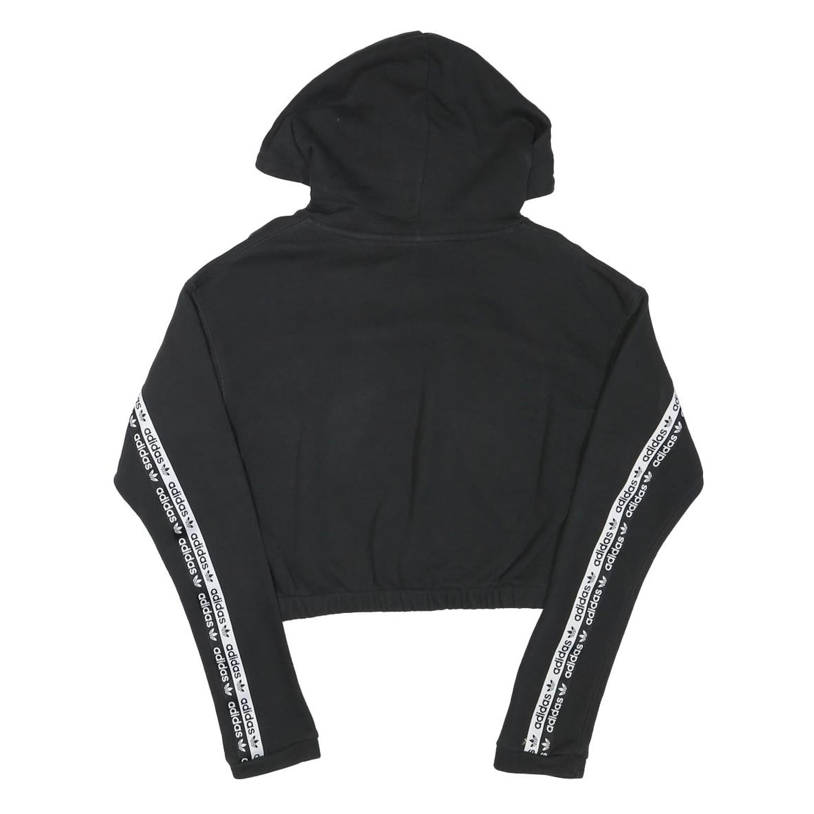 ADIDAS Womens Black Hoodie UK 8 Crop Hooded Sweatshirt Cotton Blend
