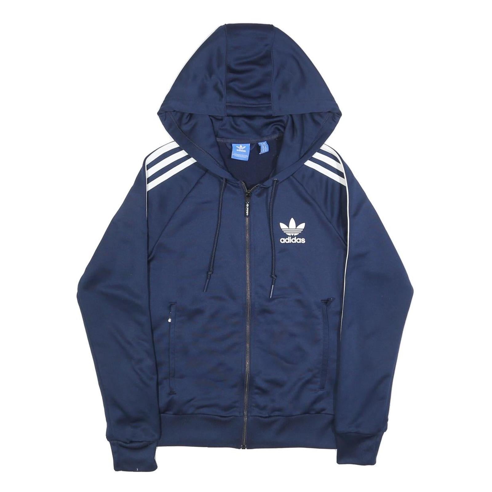 ADIDAS Womens Navy Blue Hoodie Full Zip UK 8 Tracksuit Jacket Casual Sportswear