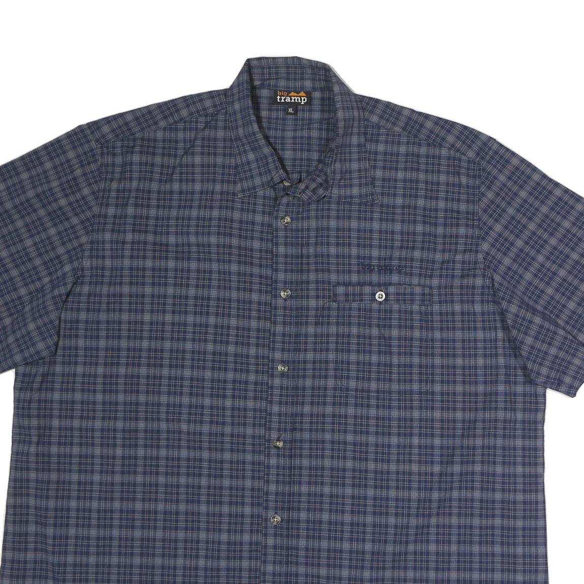 BIG TRAMP Mens Blue Check Shirt XL Cotton Short Sleeve Casual Button Up