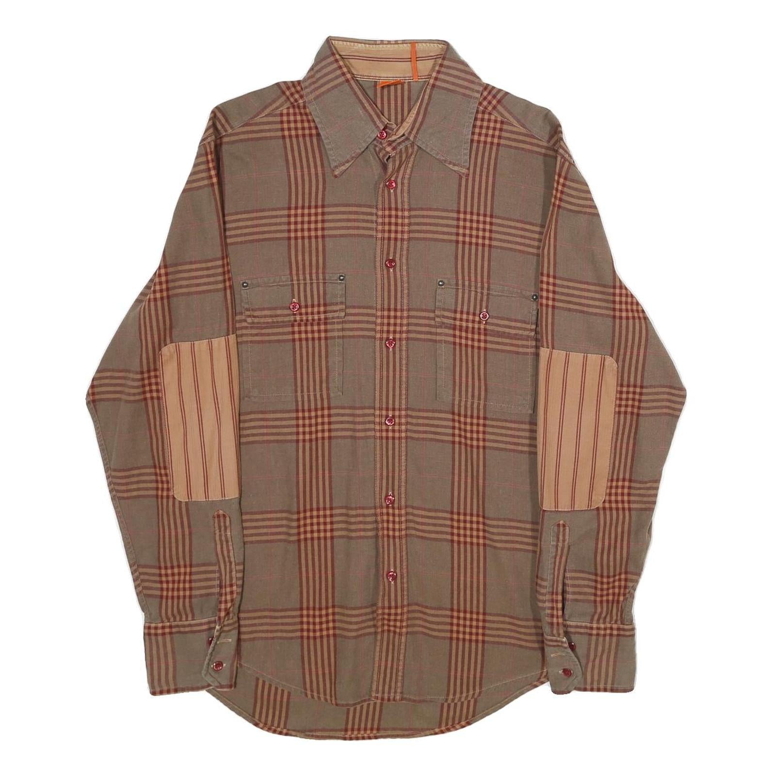 BOSS HUGO BOSS Mens Brown & Orange Check Shirt M Long Sleeve Cotton Casual