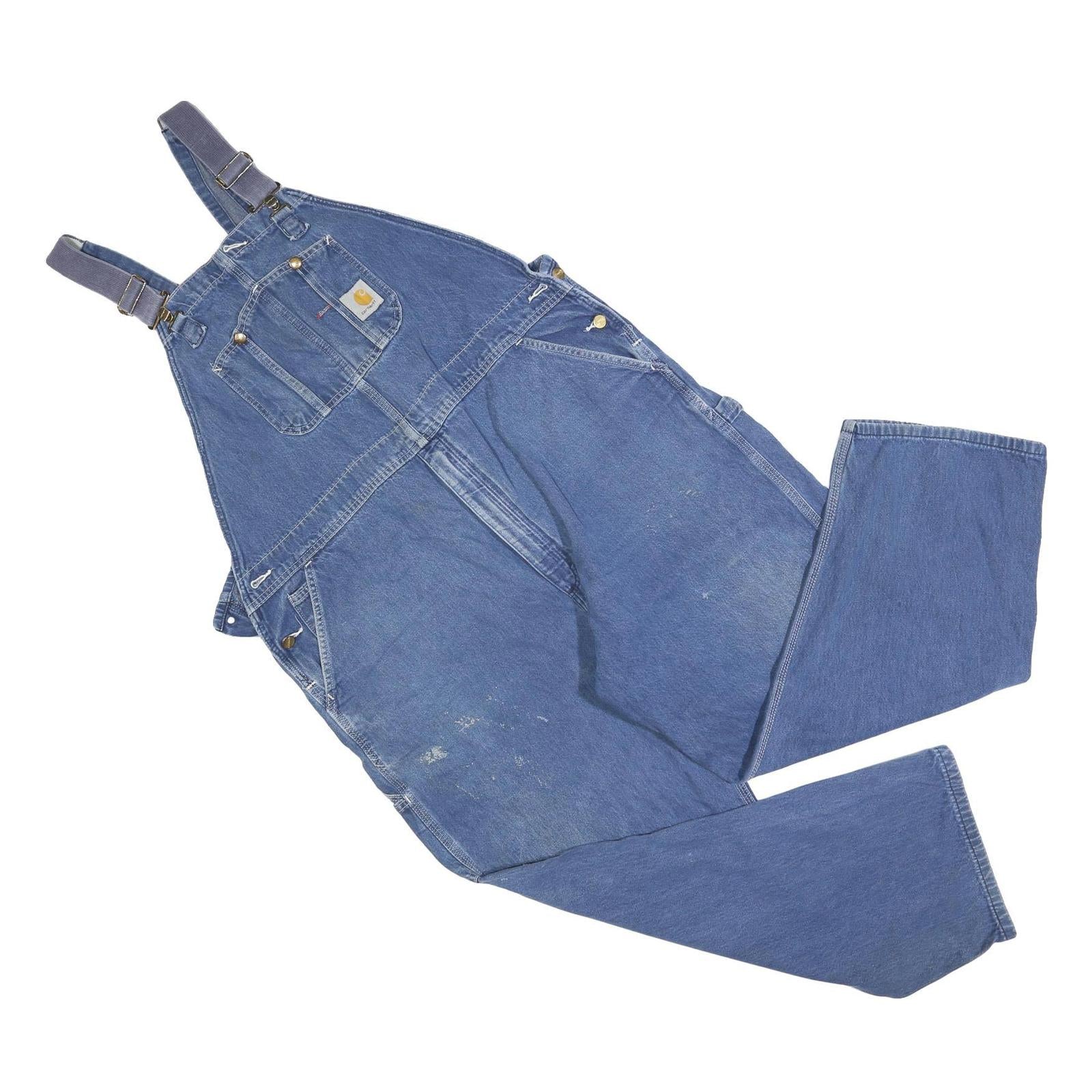 CARHARTT Mens Blue Denim Dungarees Regular Fit Cotton Blend XL W43 L30 Workwear