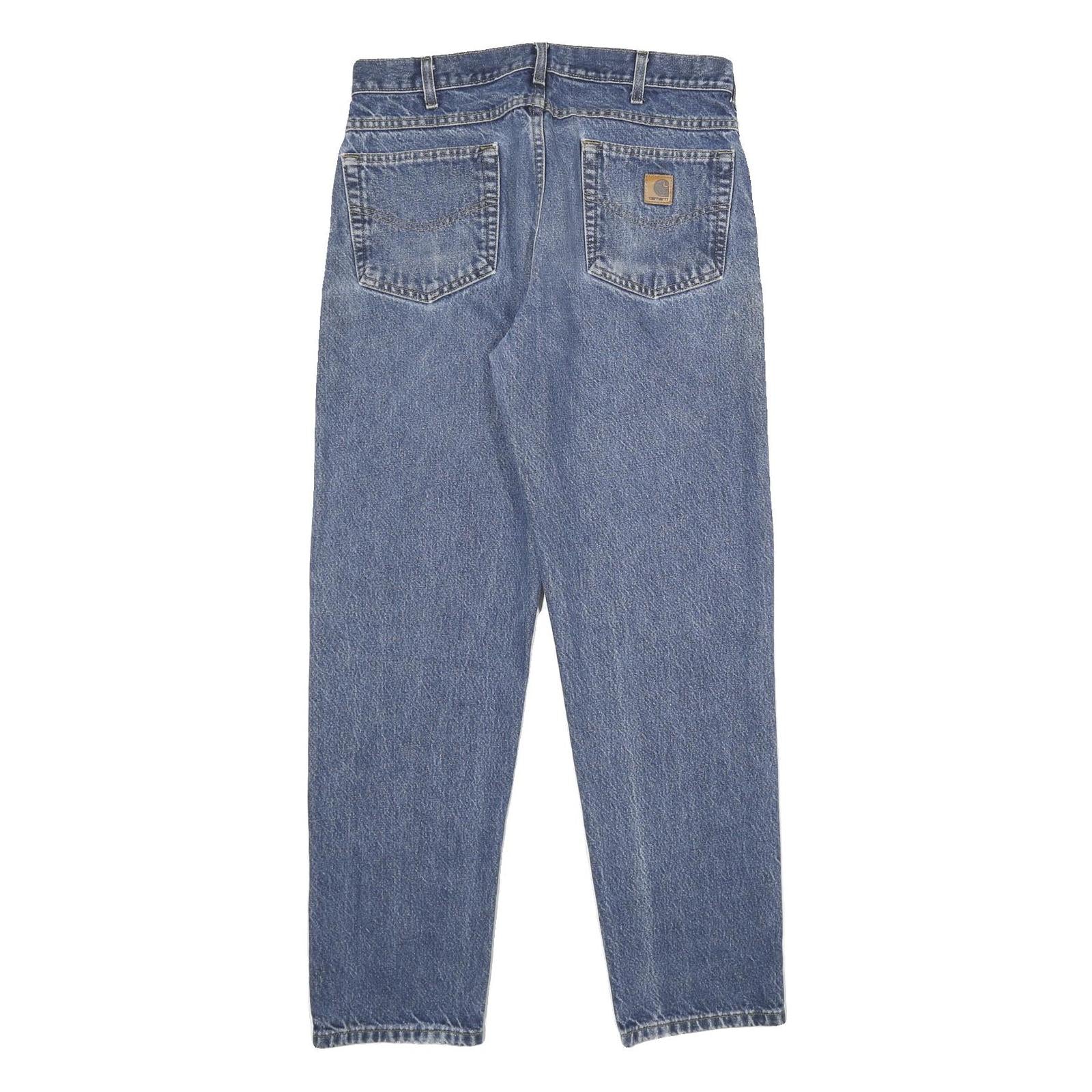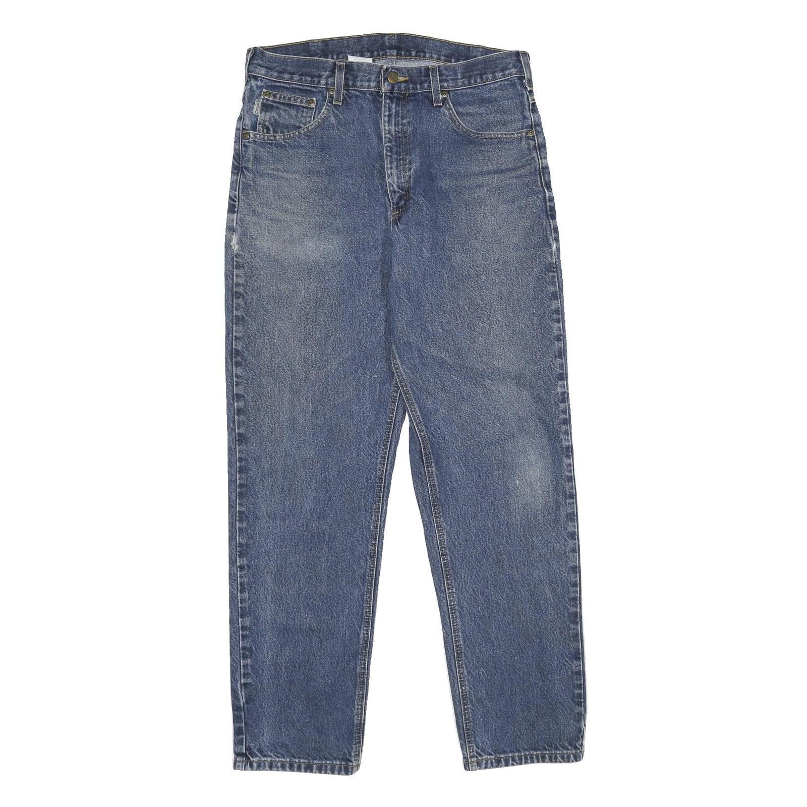 CARHARTT Mens Classic Blue Denim Straight Jeans Cotton Zip W34 L32 Workwear