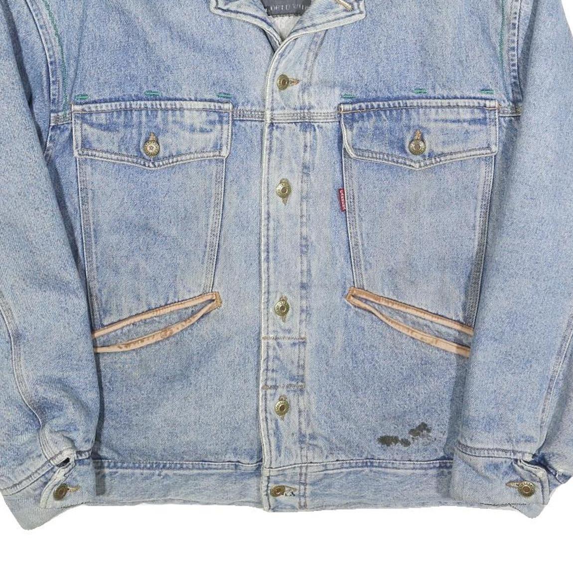 There is some wear and a few visible stains on the front lower edge, indicative of its fair pre-loved condition. This vintage style jacket pairs well with casual outfits, offering a retro and rugged aesthetic.