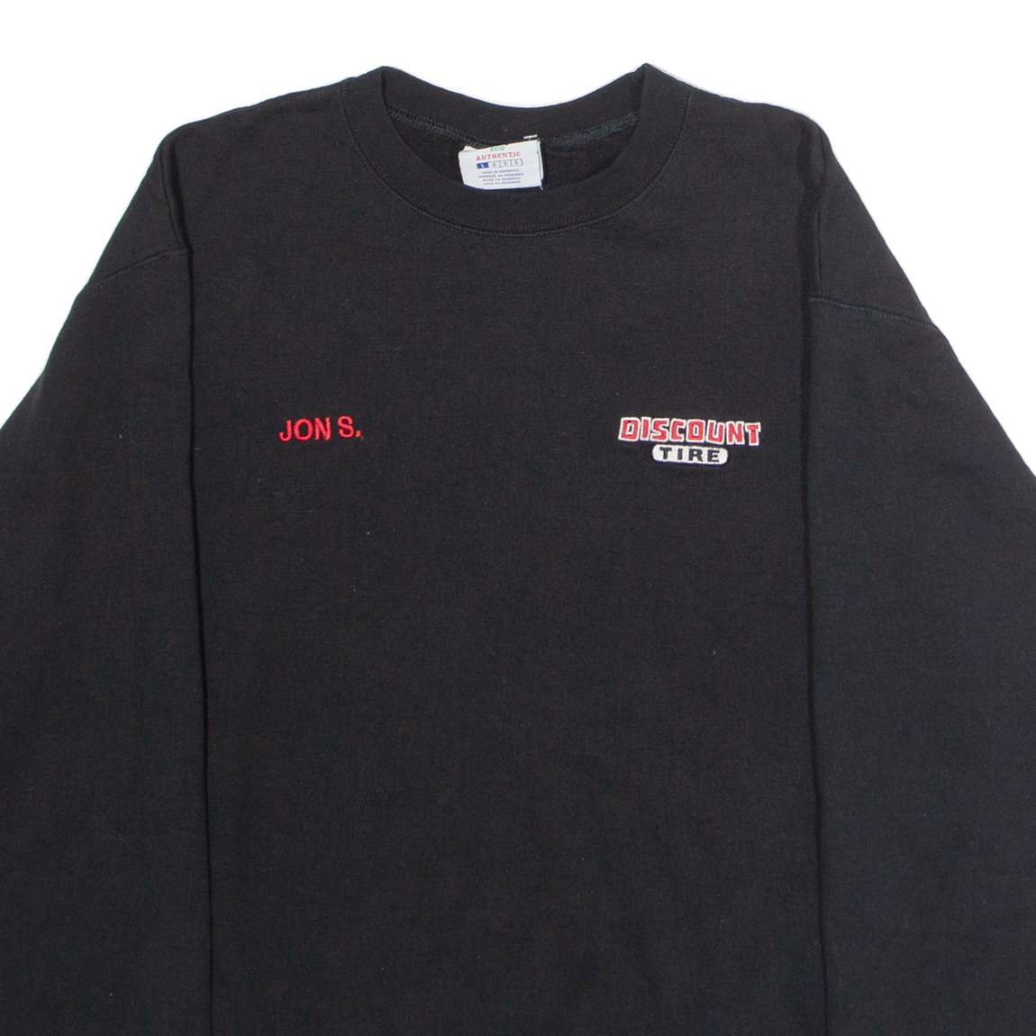 CHAMPION Discount Tire 'Jon S.' Mens Sweatshirt Black Crew Neck USA L