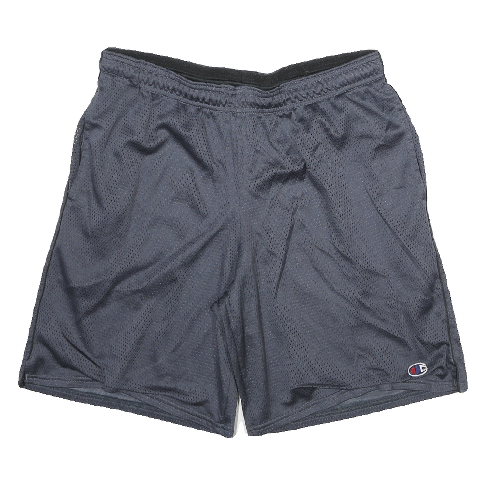 These Champion mens shorts are crafted in a deep blue polyester blend mesh fabric, offering breathability and durability. Featuring an elasticated waistband for a comfortable fit, they provide easy movement and a relaxed casual style. The Champion 'C' logo is clearly embroidered near the hem on the front for subtle branding.