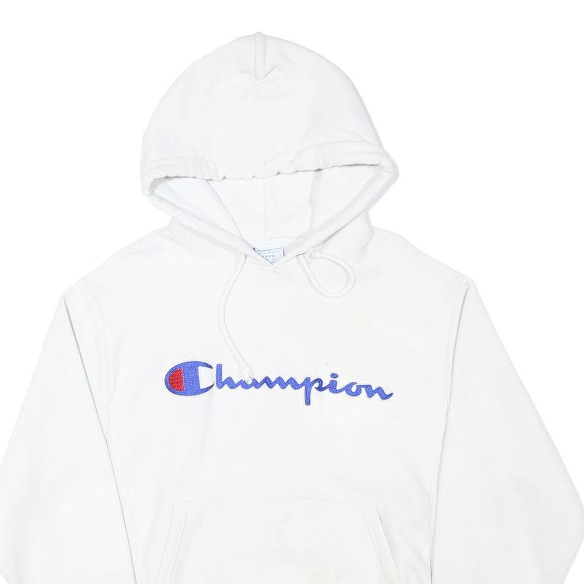 CHAMPION Mens White Hoodie M Cotton Blend Pullover Sweatshirt
