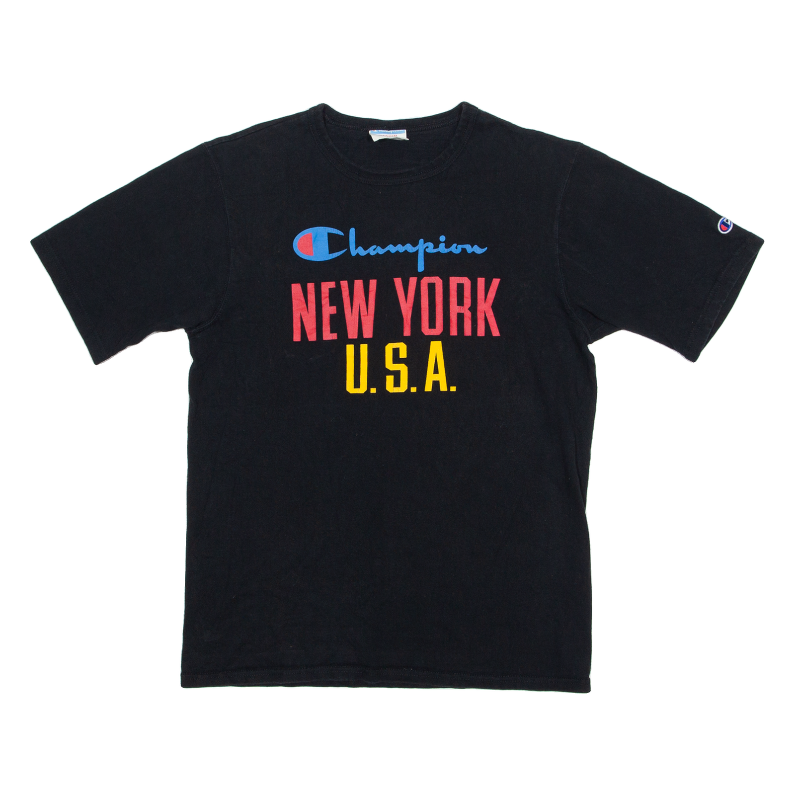 CHAMPION New York Mens T-Shirt Black USA Crew Neck M