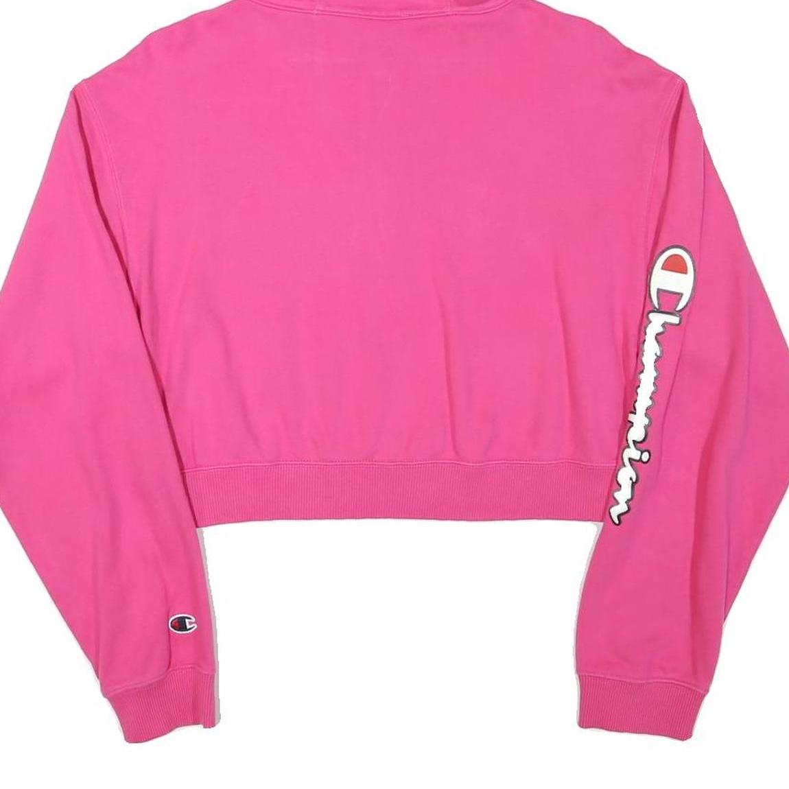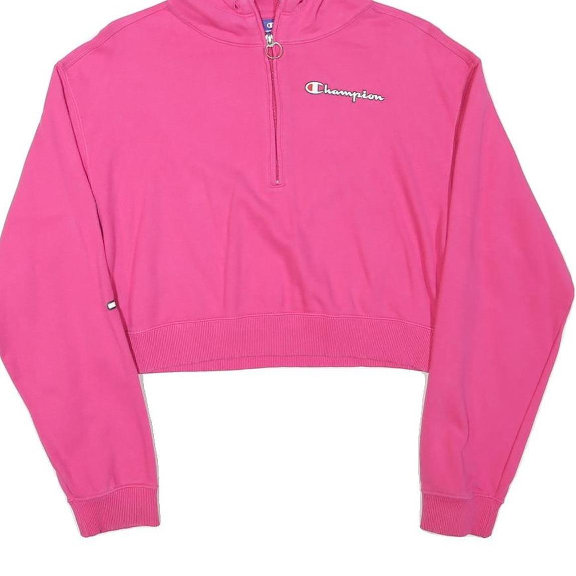 CHAMPION Womens Pink Pullover Hoodie L Cropped ¼ Zip Long Sleeve