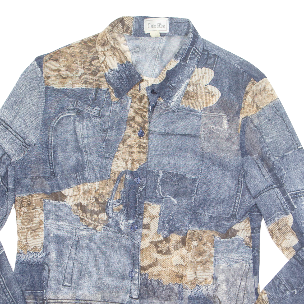 CHRIS LINE Sheer Womens Printed Shirt Blue Collared Crazy Pattern UK 16