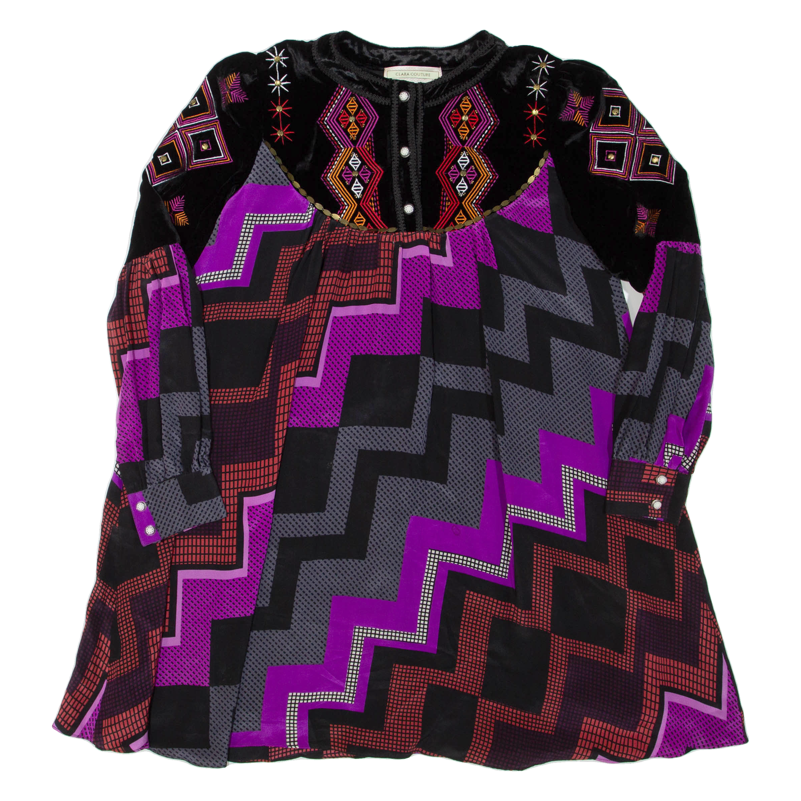 CLARA COUTURE Womens Printed Blouse Black Long Sleeve Crazy Pattern L