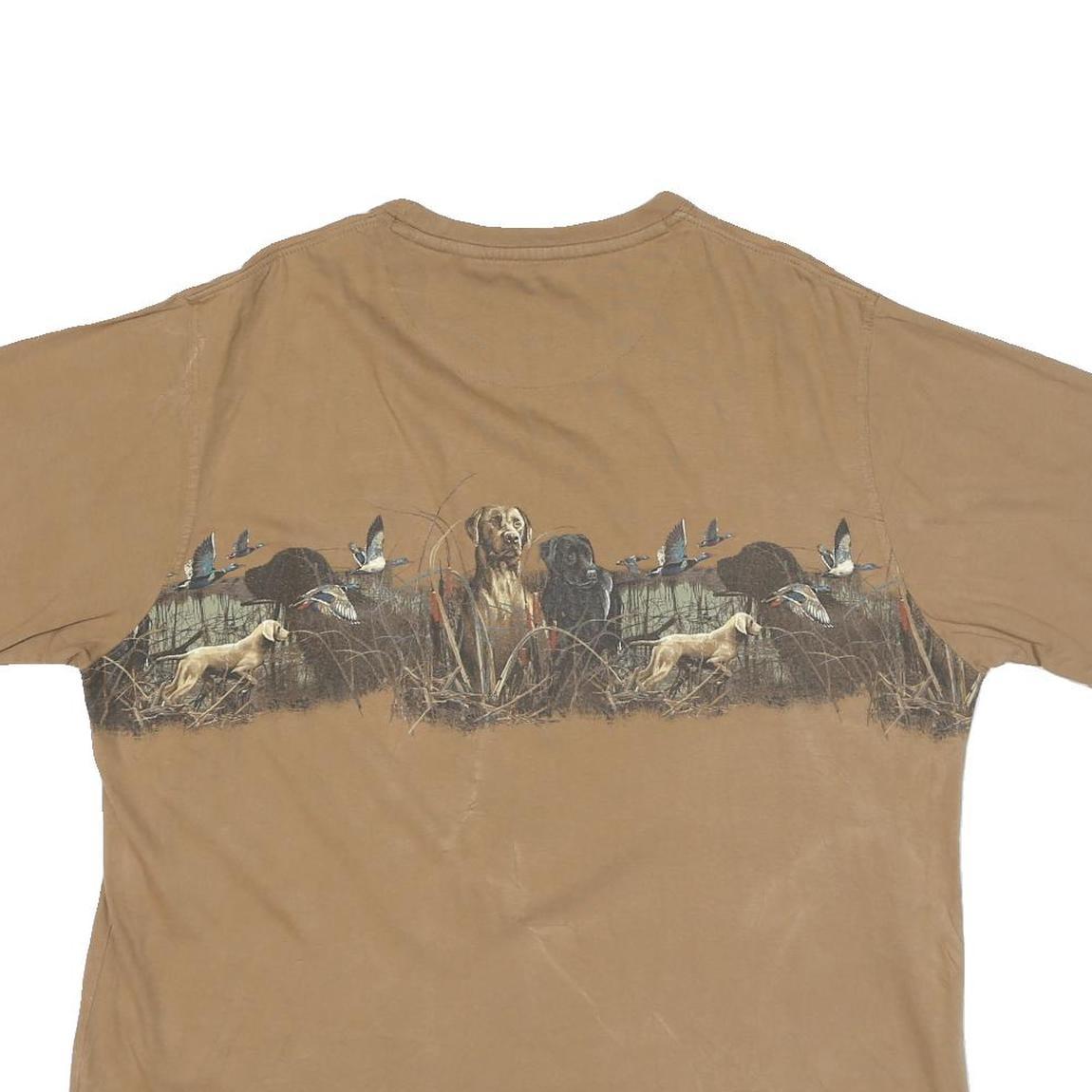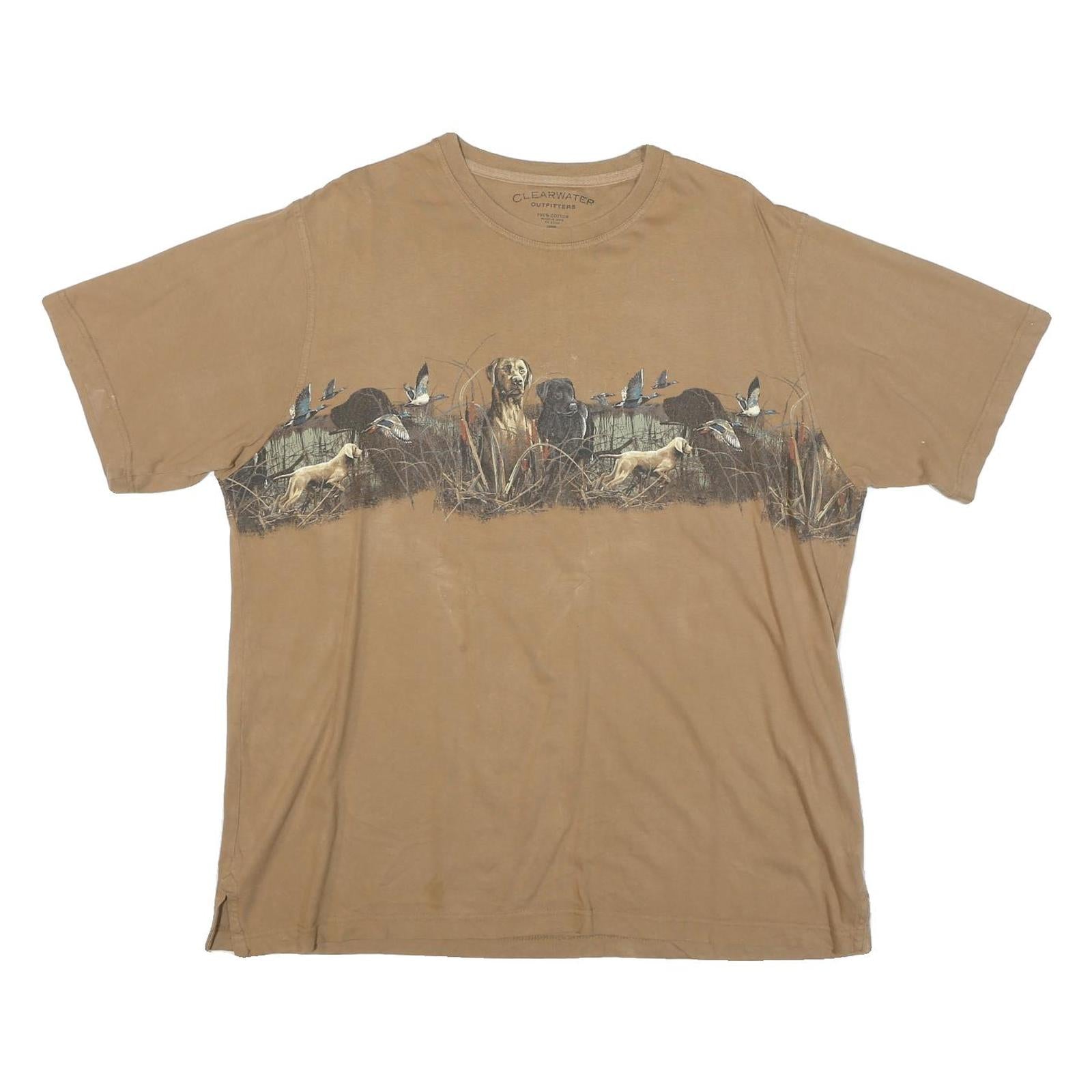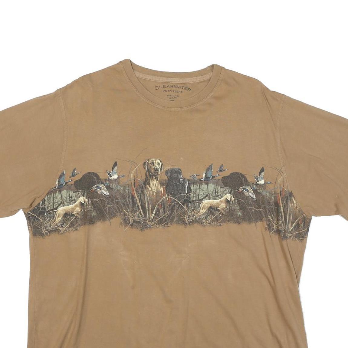 CLEARWATER Mens Beige Hunting Scene Graphic T-Shirt L Short Sleeve Crew Neck