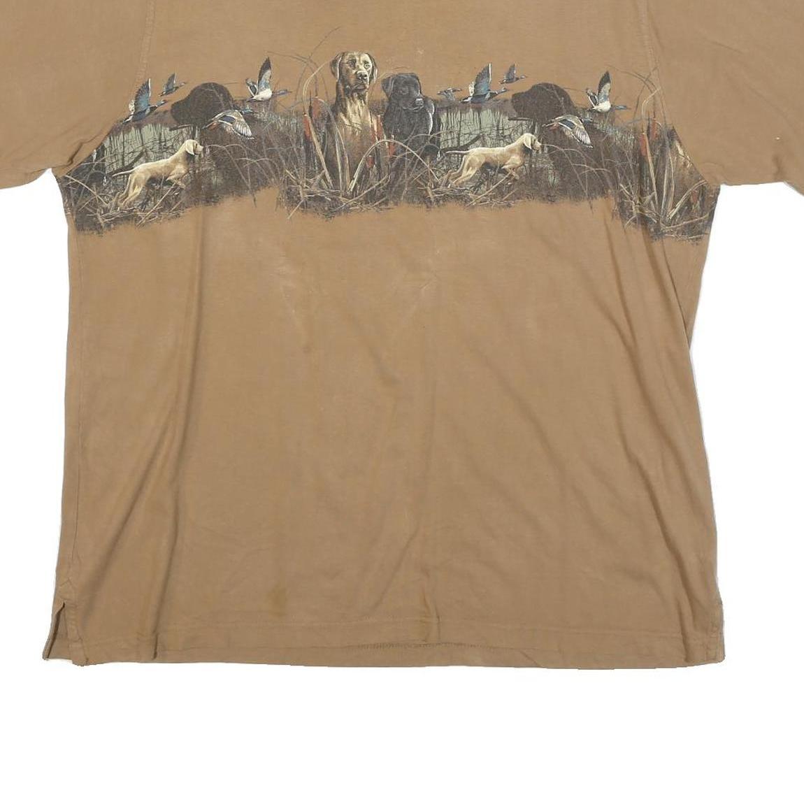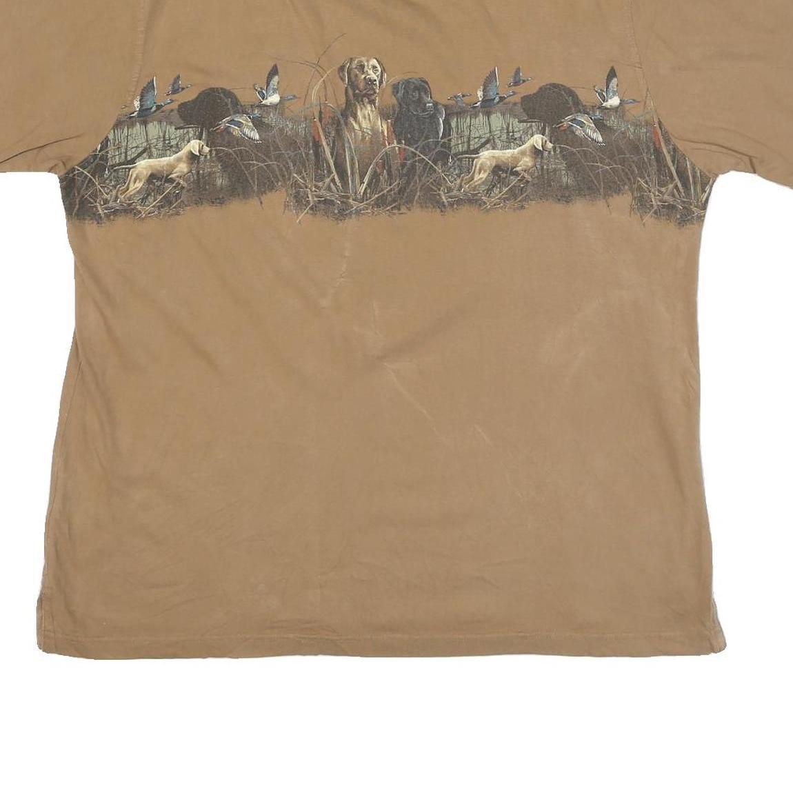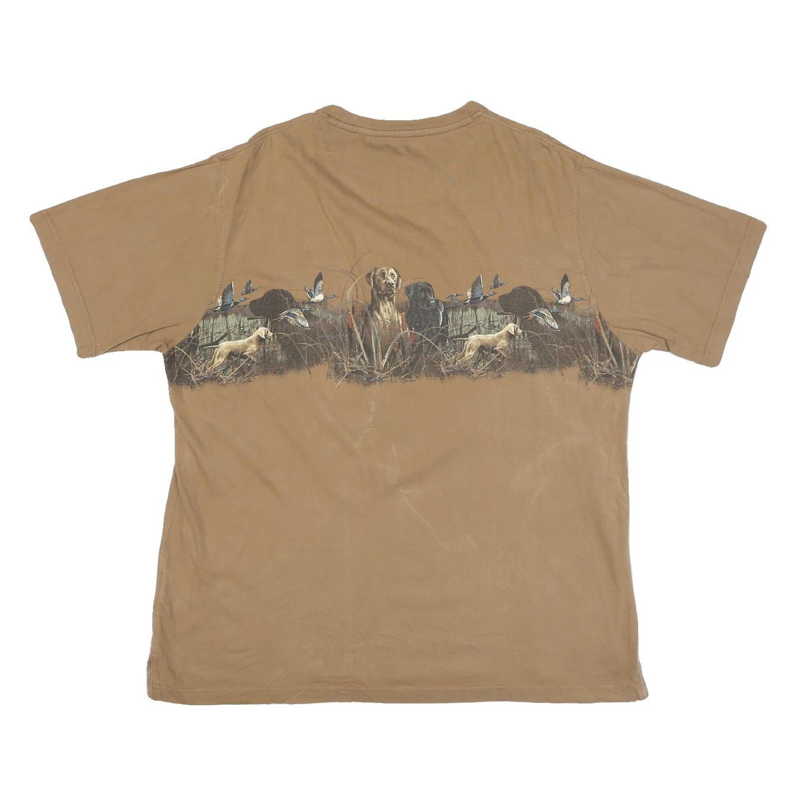 CLEARWATER Mens Beige Hunting Scene Graphic T-Shirt L Short Sleeve Crew Neck