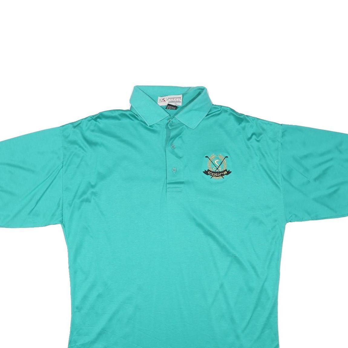 COBRA Mens Turquoise Polo Shirt L Cotton Blend Short Sleeve Crest Logo Casual