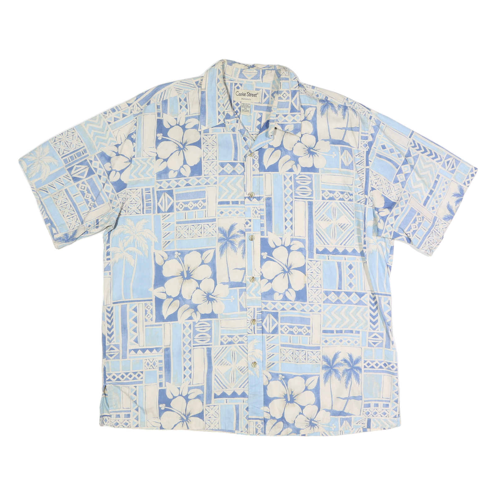 Cooke Street is known for authentic island-inspired apparel, and this shirt showcases their commitment to vibrant prints and quality cotton material. It has a button front closure and a classic pointed collar, ideal for vacation or leisure wardrobe additions.