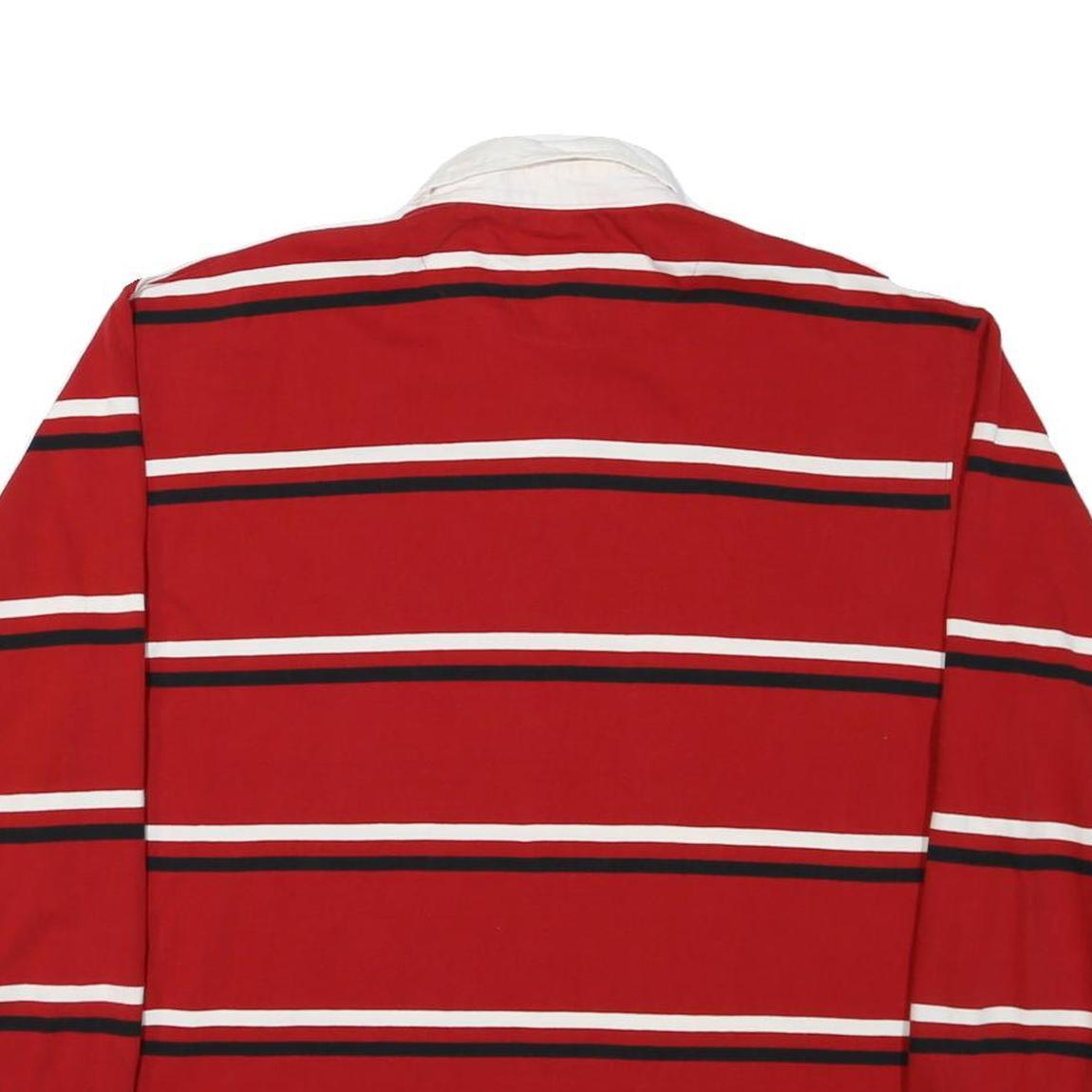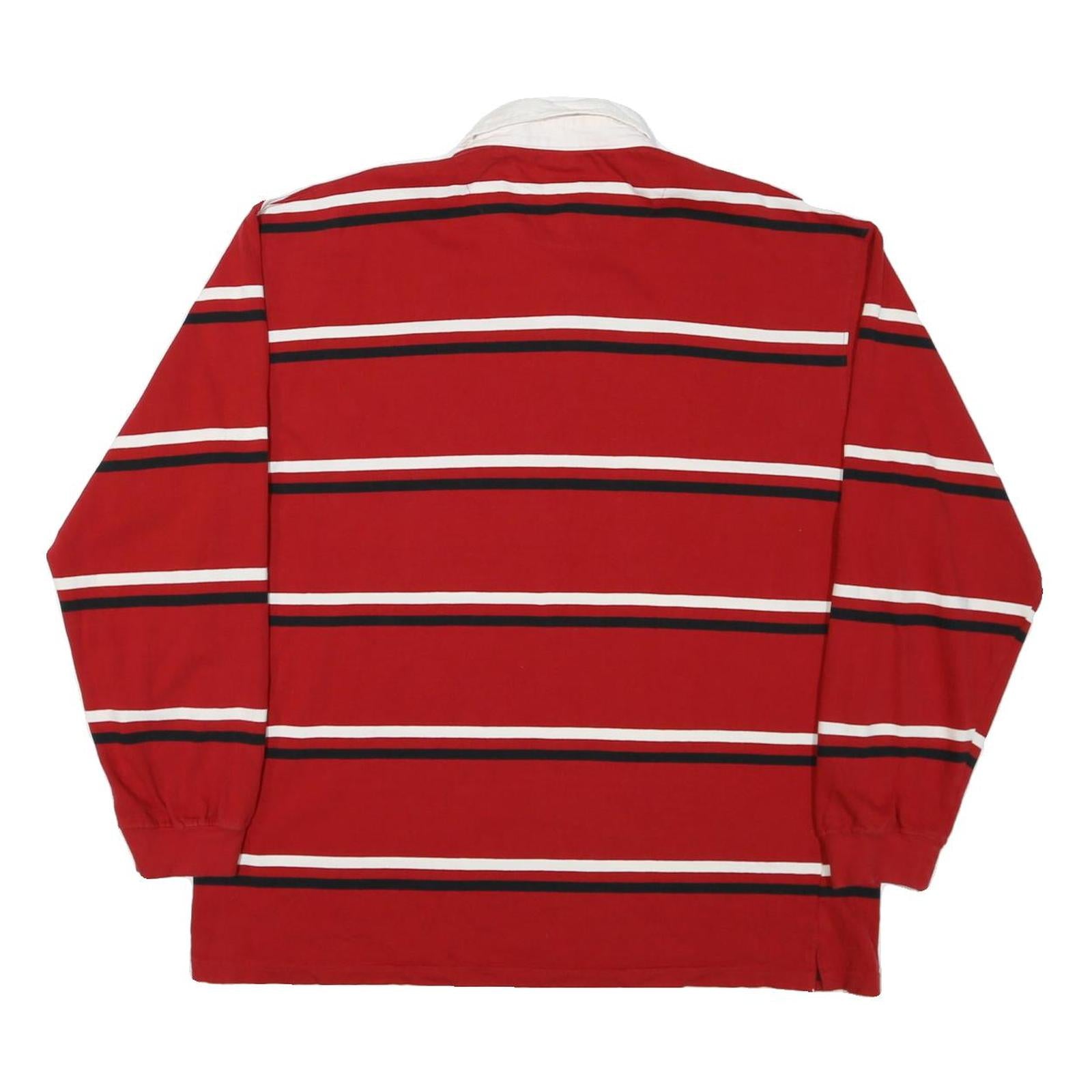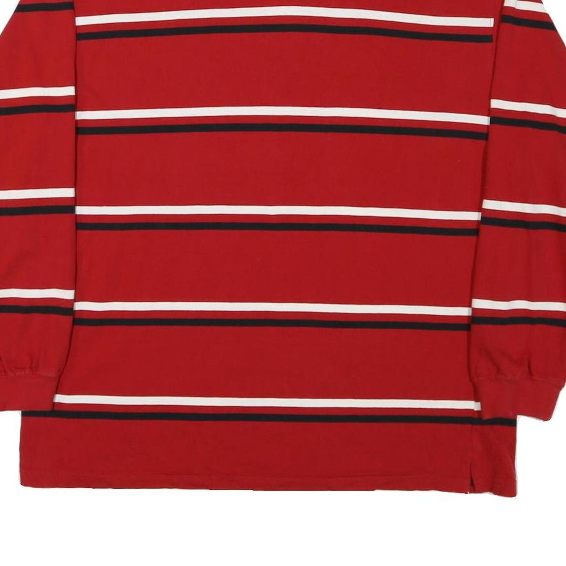 DENVER HAYES Mens Red & White Striped Long Sleeve Polo Shirt L Cotton Blend