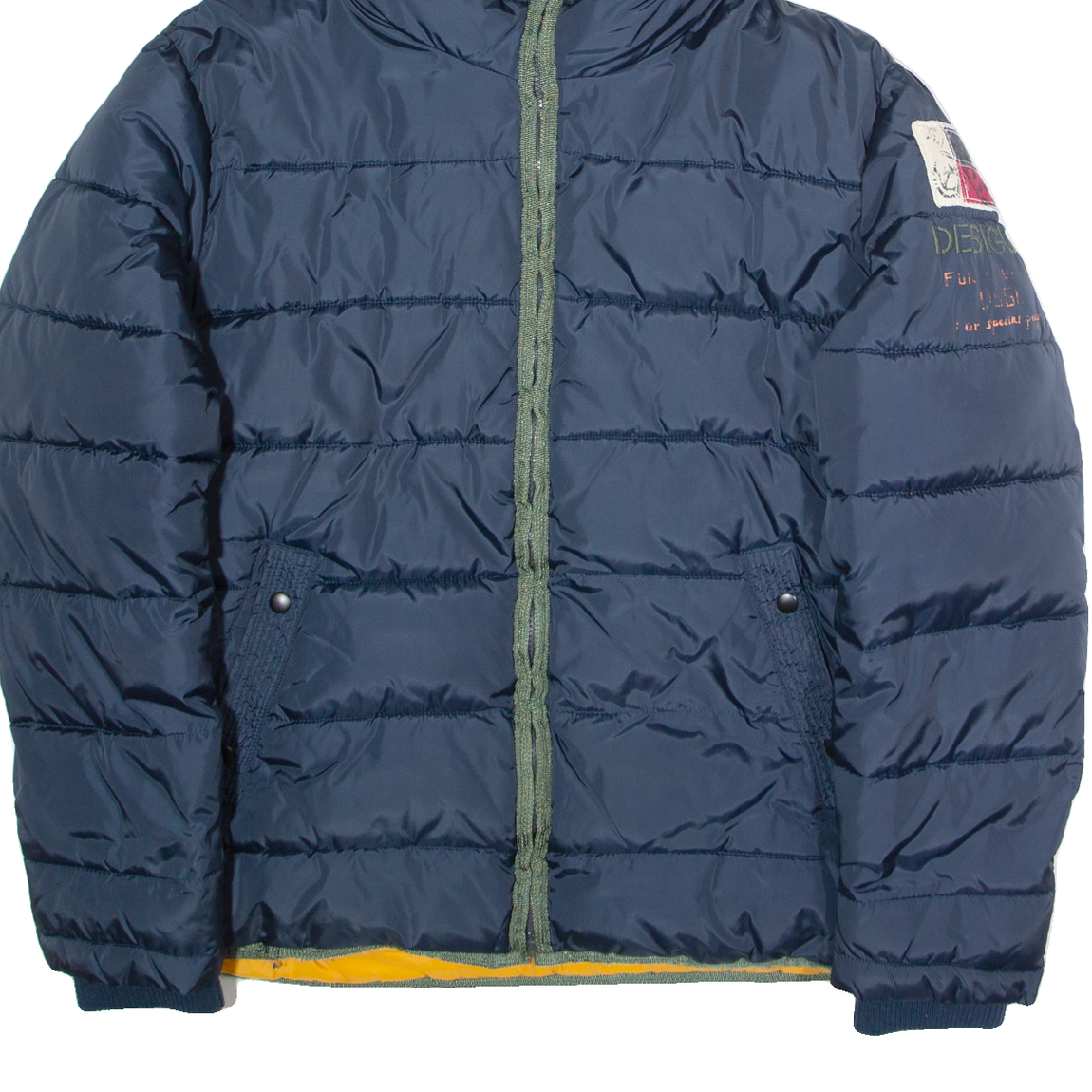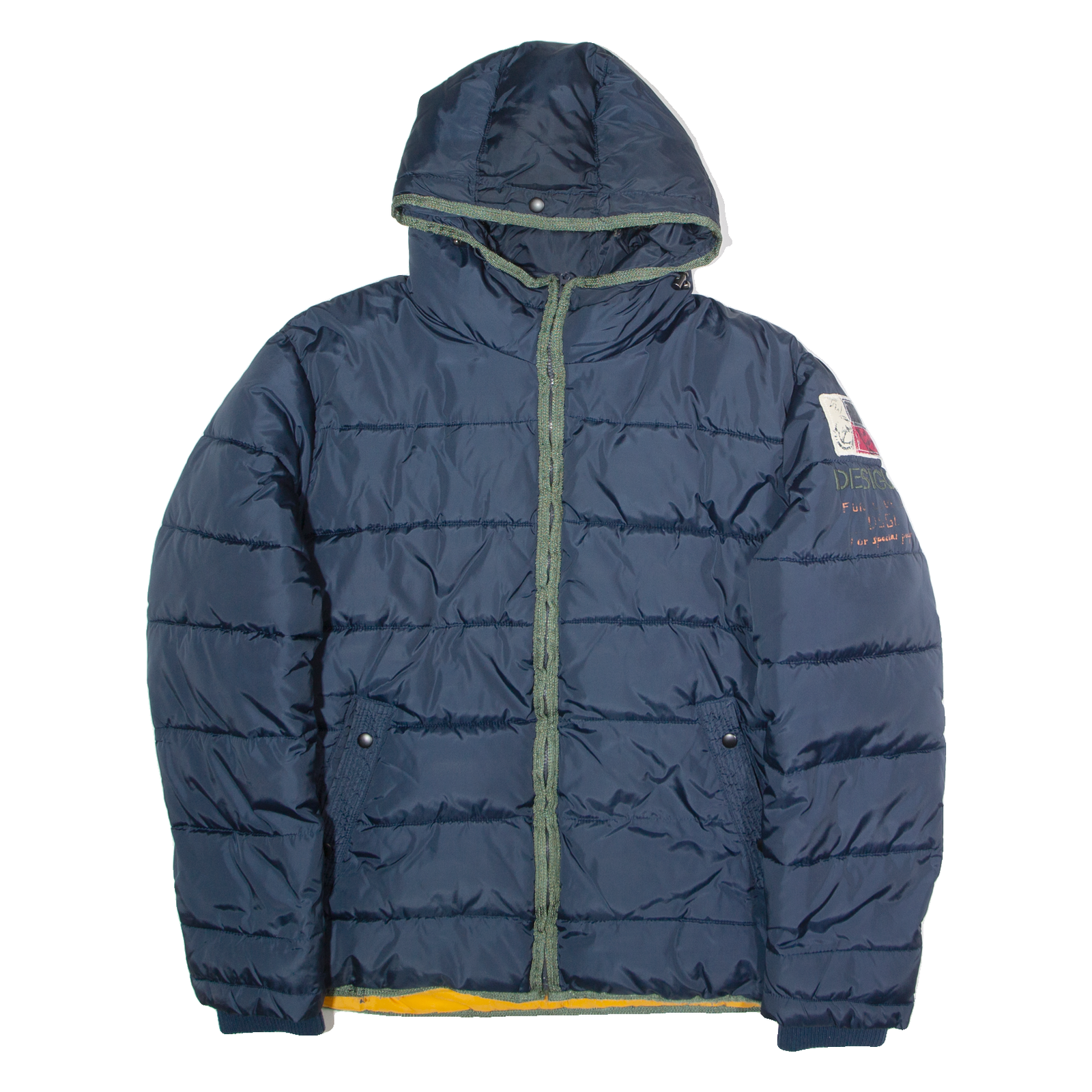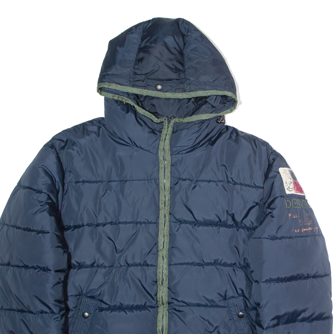 DESIGUAL Mens Puffer Jacket Blue Hooded 2XL