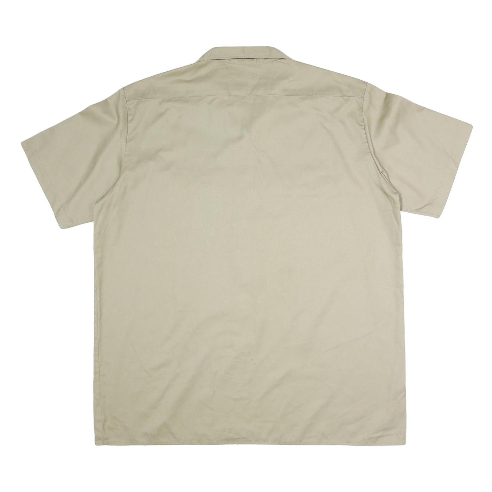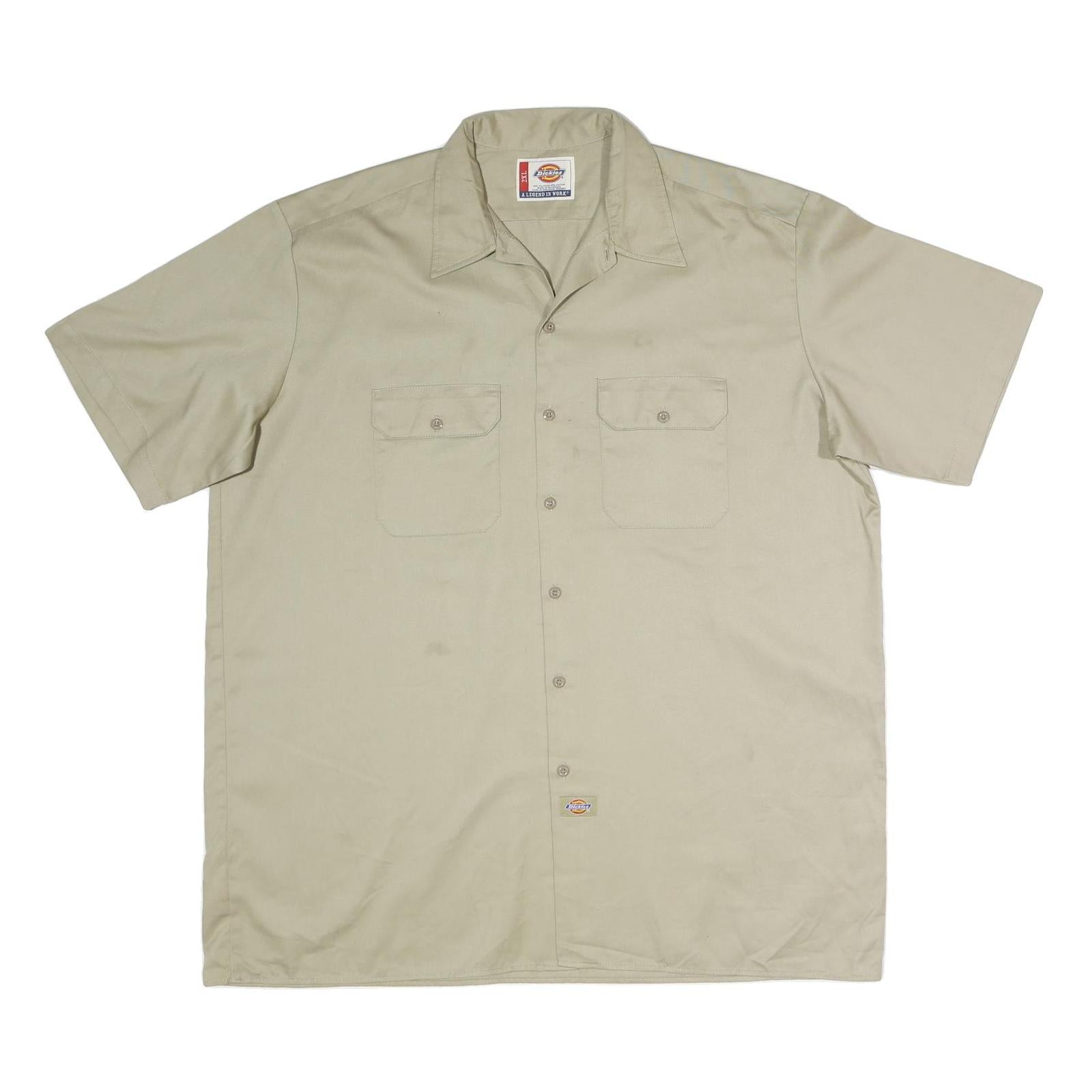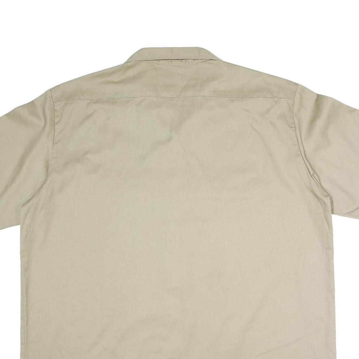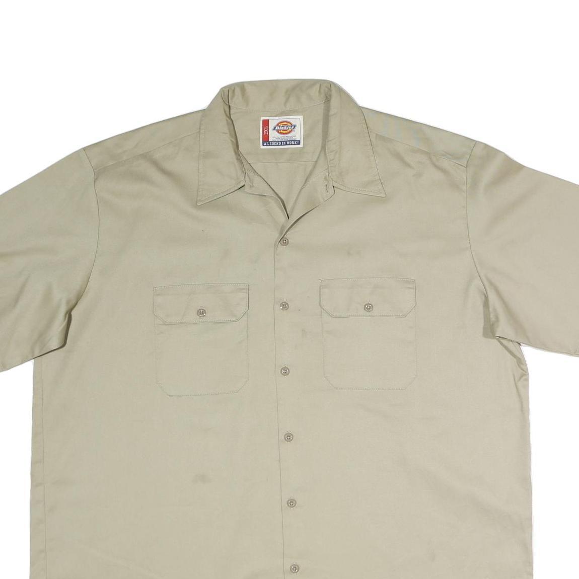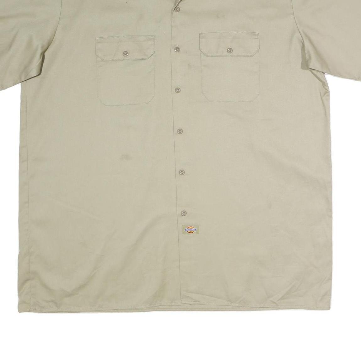 DICKIES Mens Beige Work Shirt Polyester Blend 2XL Button Pocket Short Sleeve
