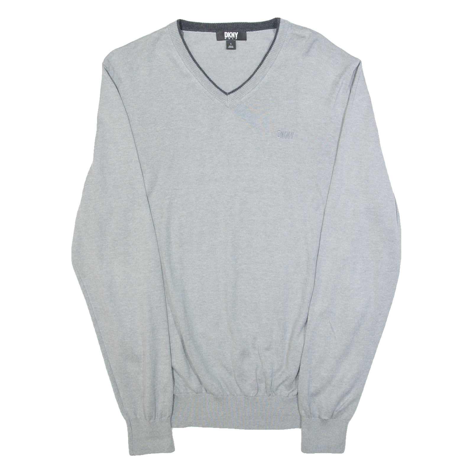 DKNY Golf Mens Jumper Grey V-Neck Tight Knit L