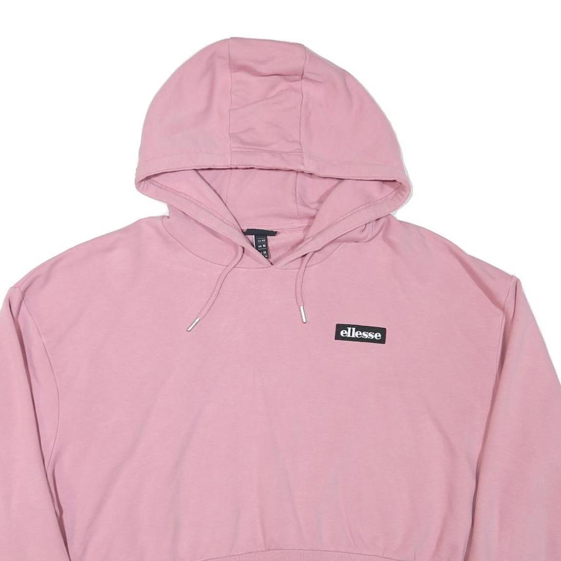 ELLESSE Womens Pink Cropped Hoodie UK 14 Casual Cotton Blend Stylish