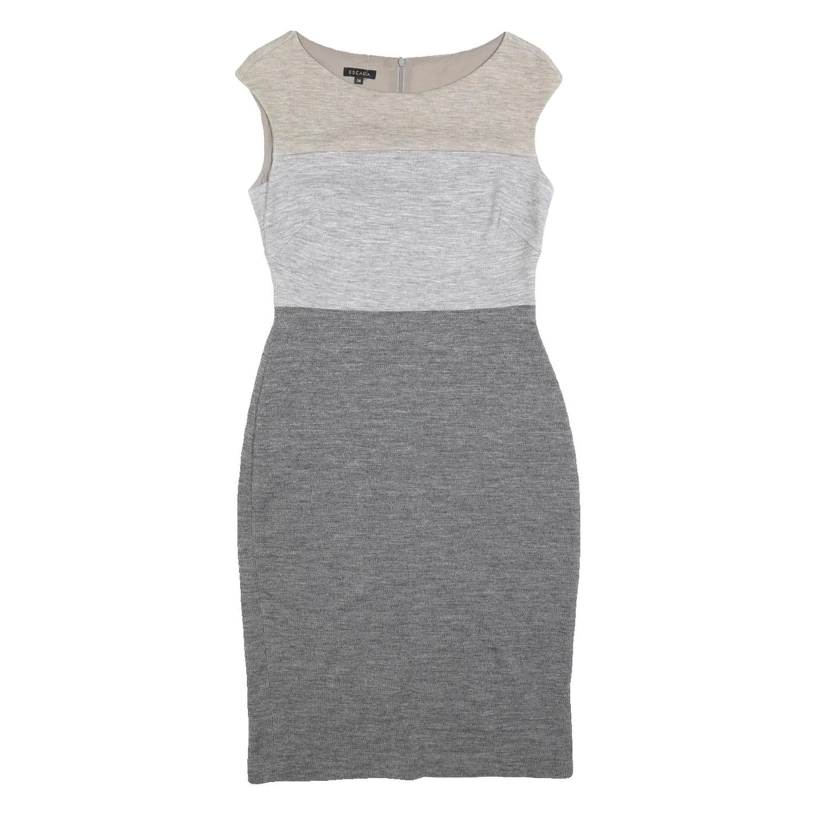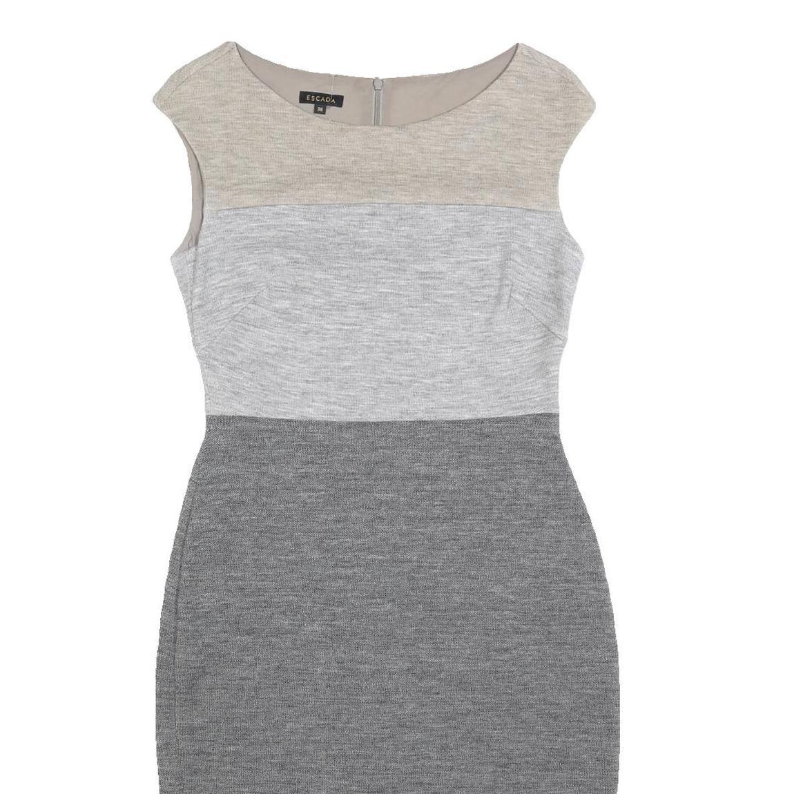 ESCADA Womens Beige & Light Grey & Grey Sleeveless Wool Blend Bodycon Dress S