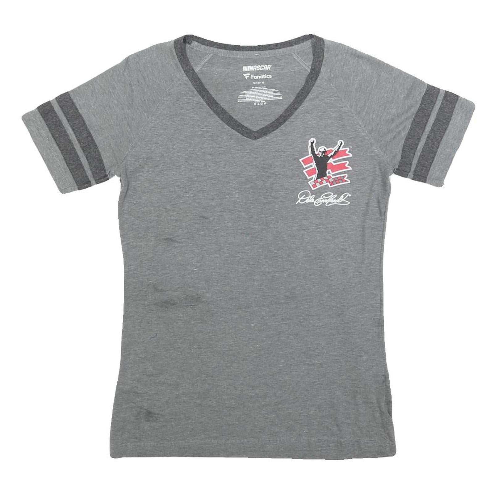 FANATICS Womens Grey Dale Earnhardt NASCAR Graphic T-Shirt M V-Neck Short Sleeve