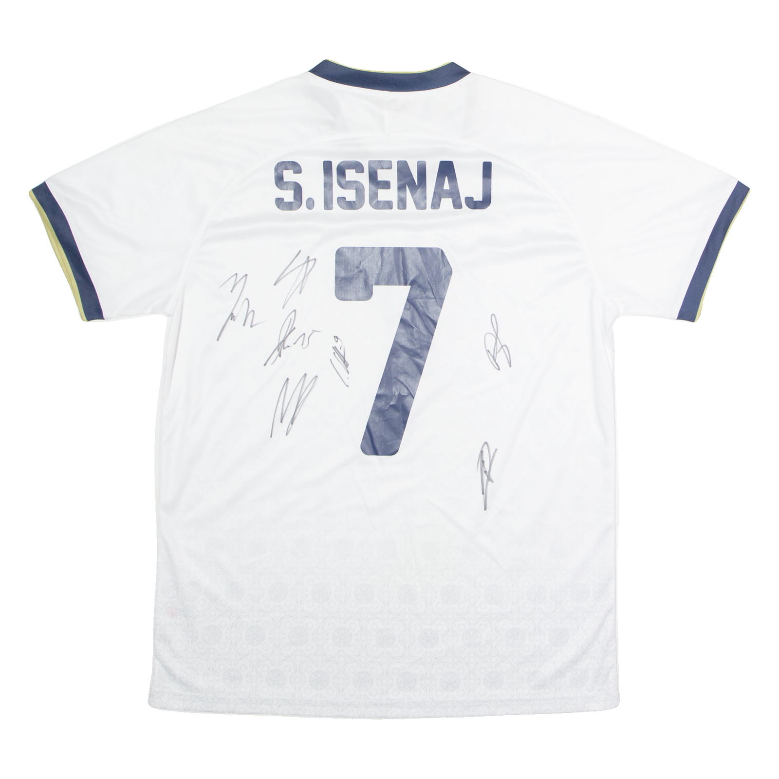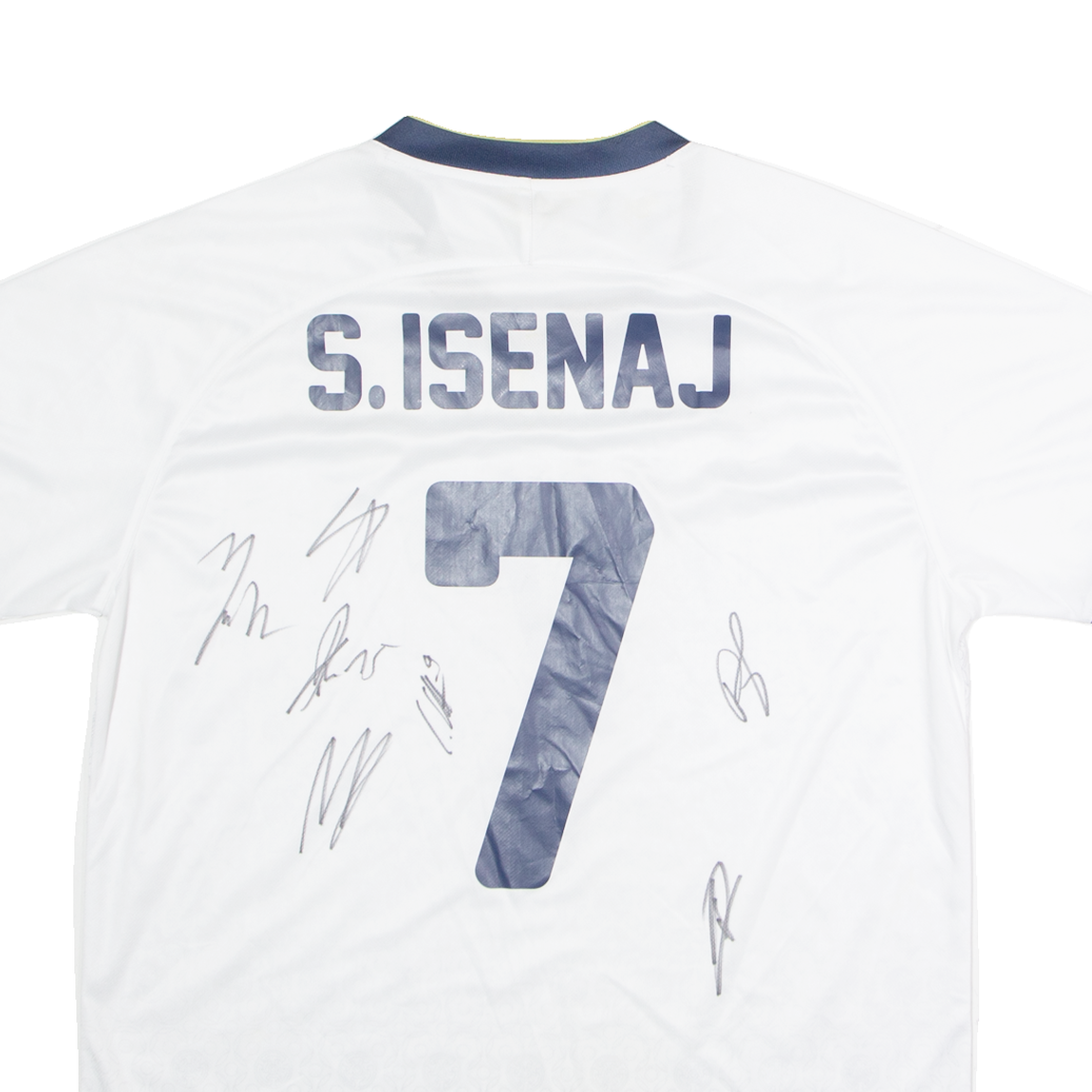 FOURTEEN 2021 Kosovo Away #7 S. Isenaj SIGNED Mens Football Shirt Jersey White 2XL