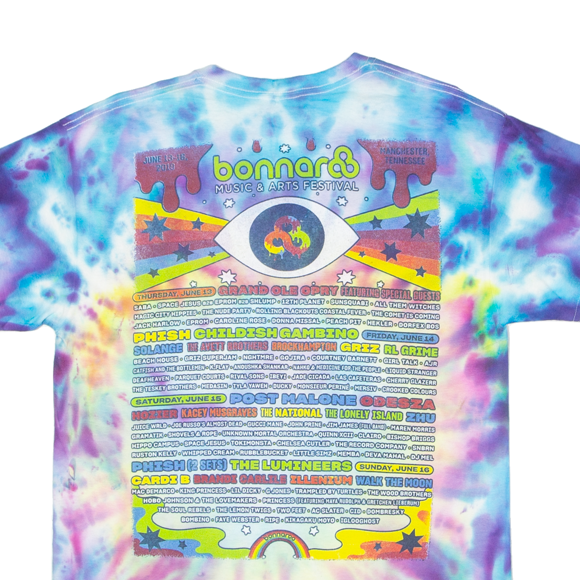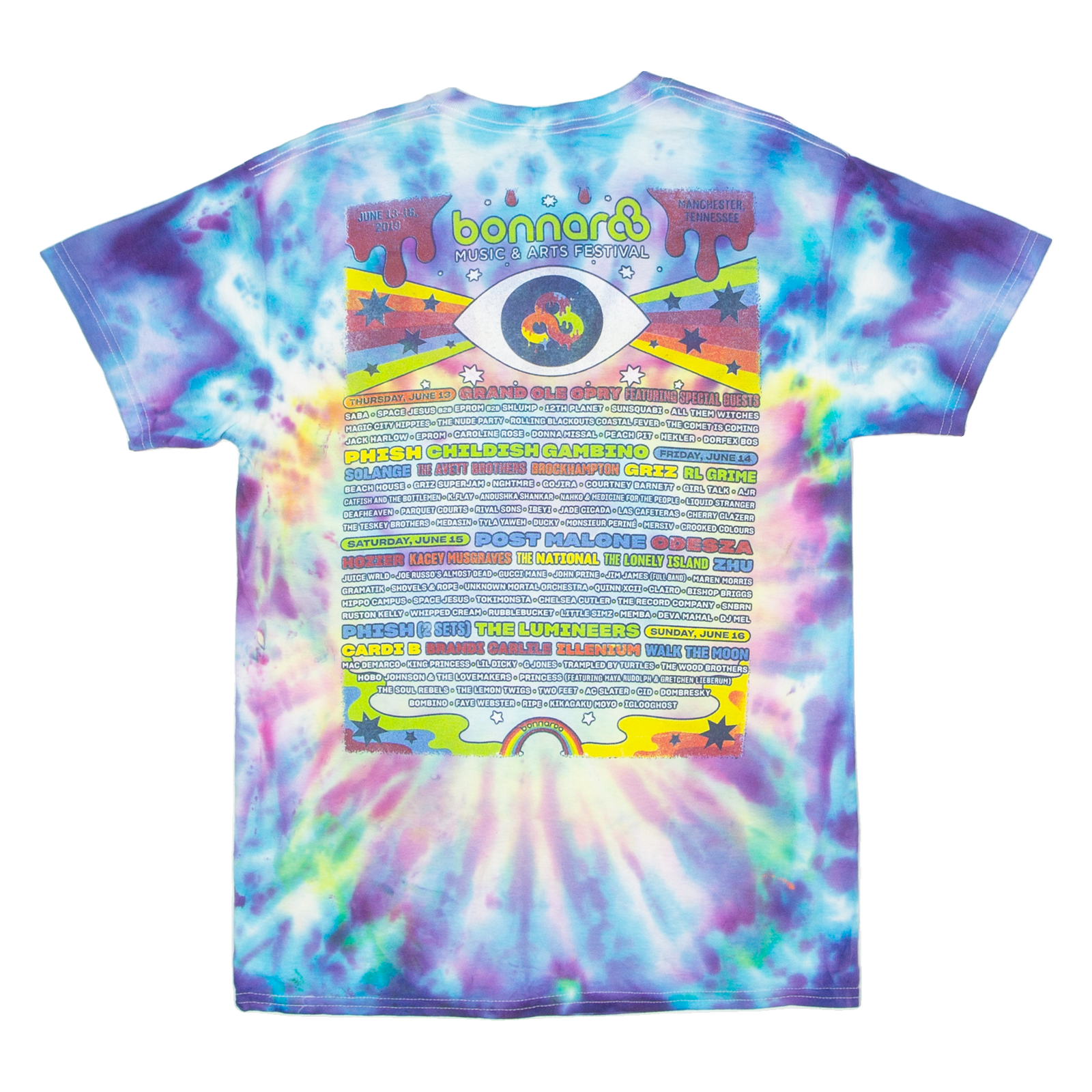 GILDAN 2019 Bonnaroo Music And Arts Festival Mens Tie Dye T-Shirt Blue USA M