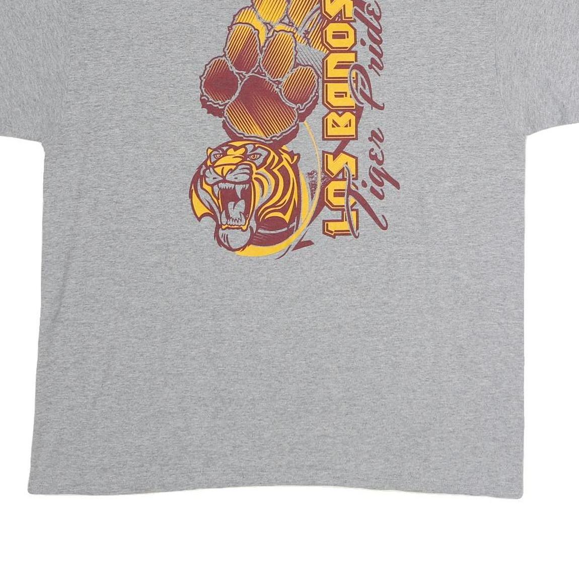 GILDAN Mens Grey Los Banos Tiger Pride Graphic T-Shirt XL Short Sleeve Crew Neck