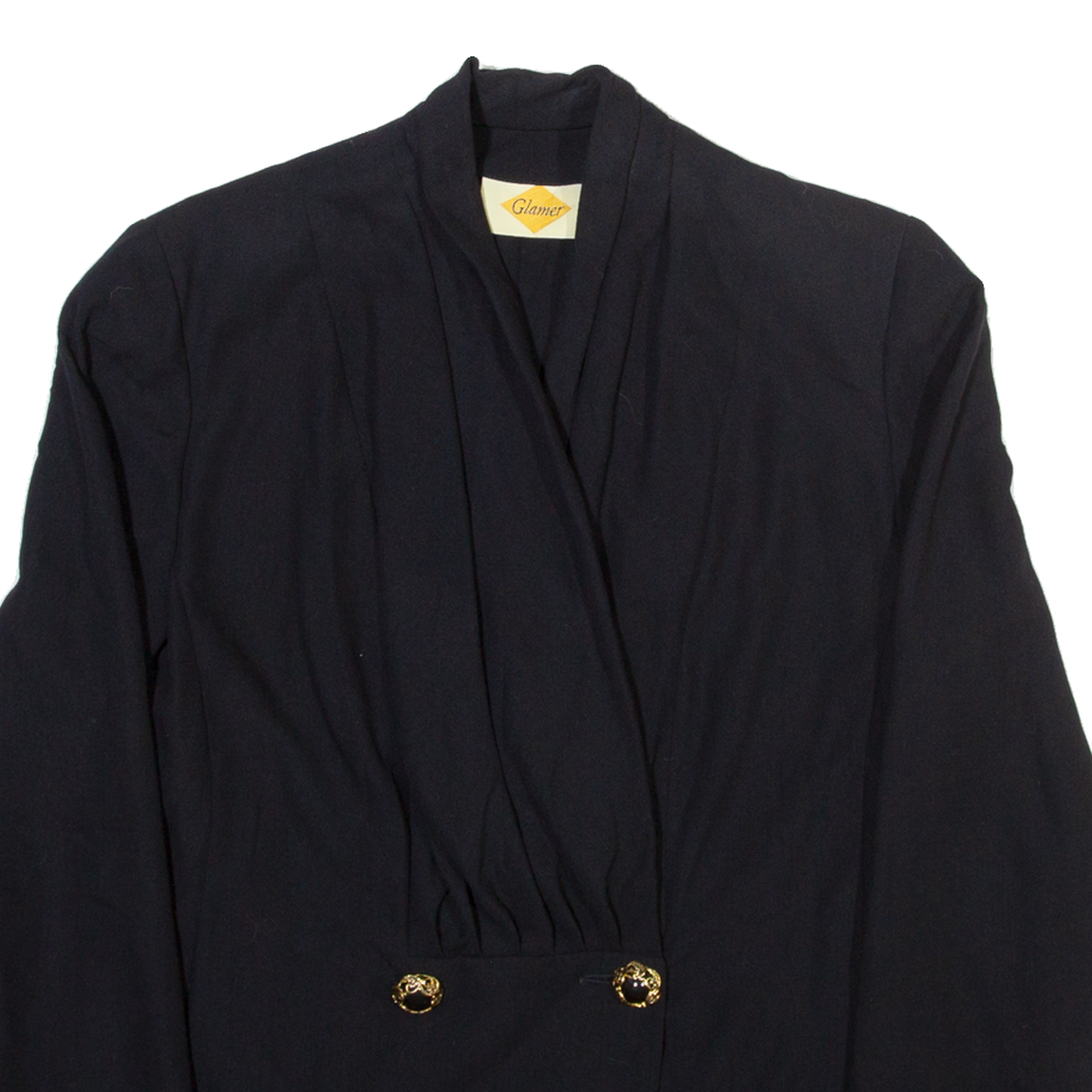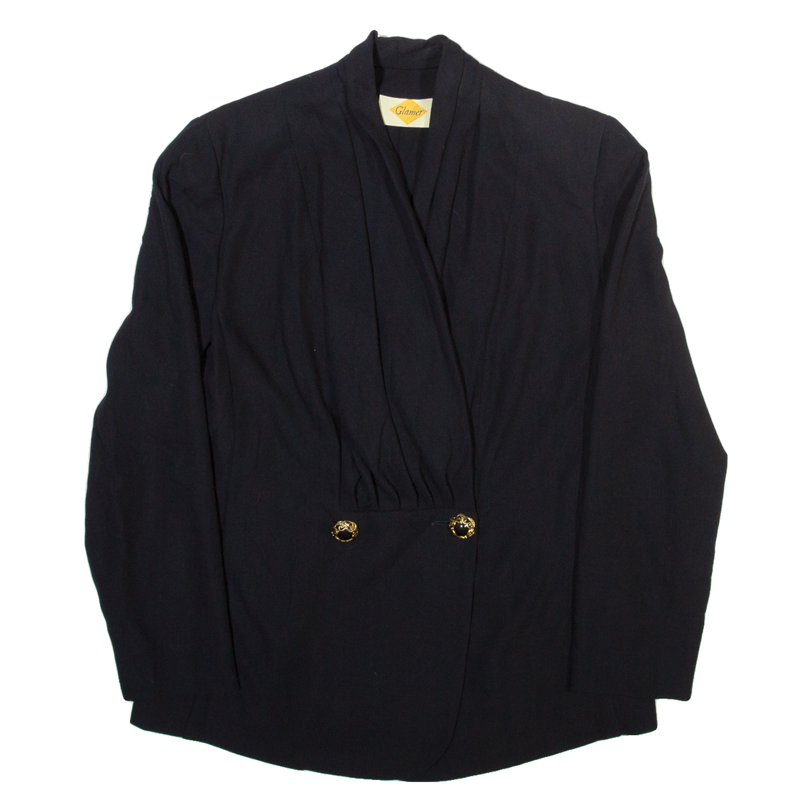 GLAMER Womens Wrap Blouse Black V-Neck Long Sleeve Viscose M