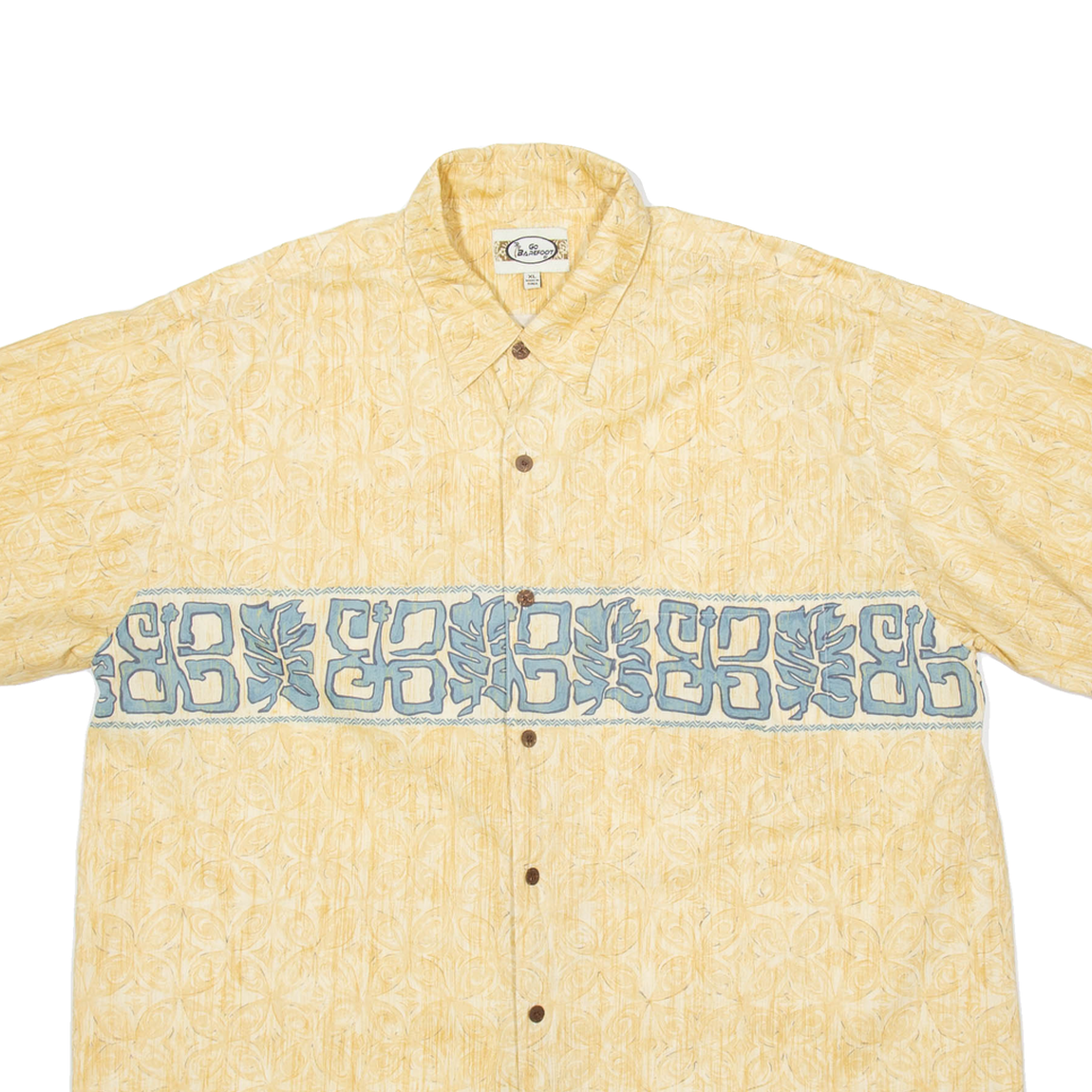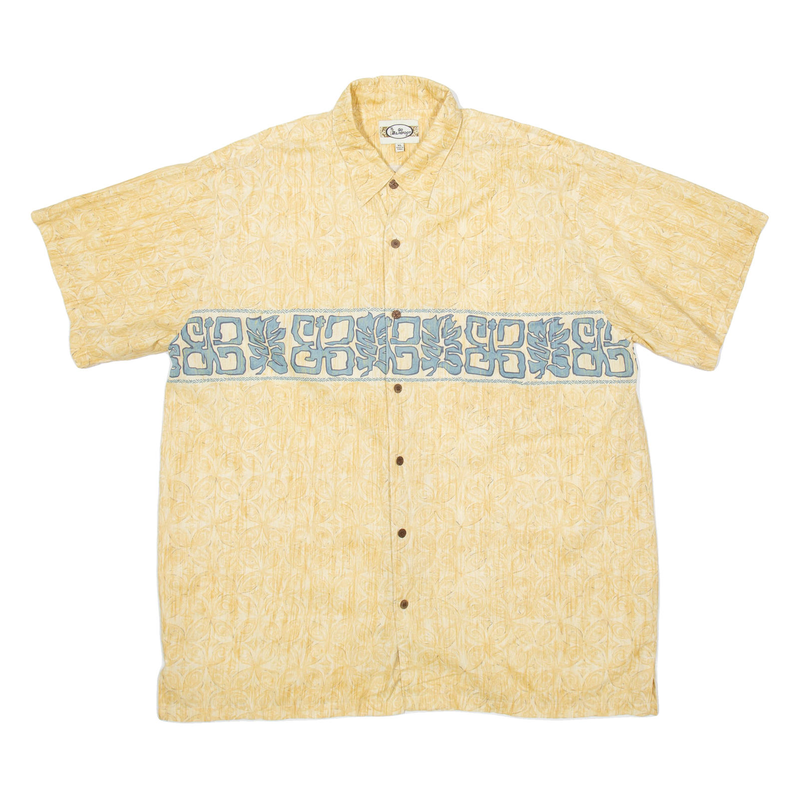 GO BAREFOOT Mens Hawaiian Shirt Yellow Crazy Pattern XL