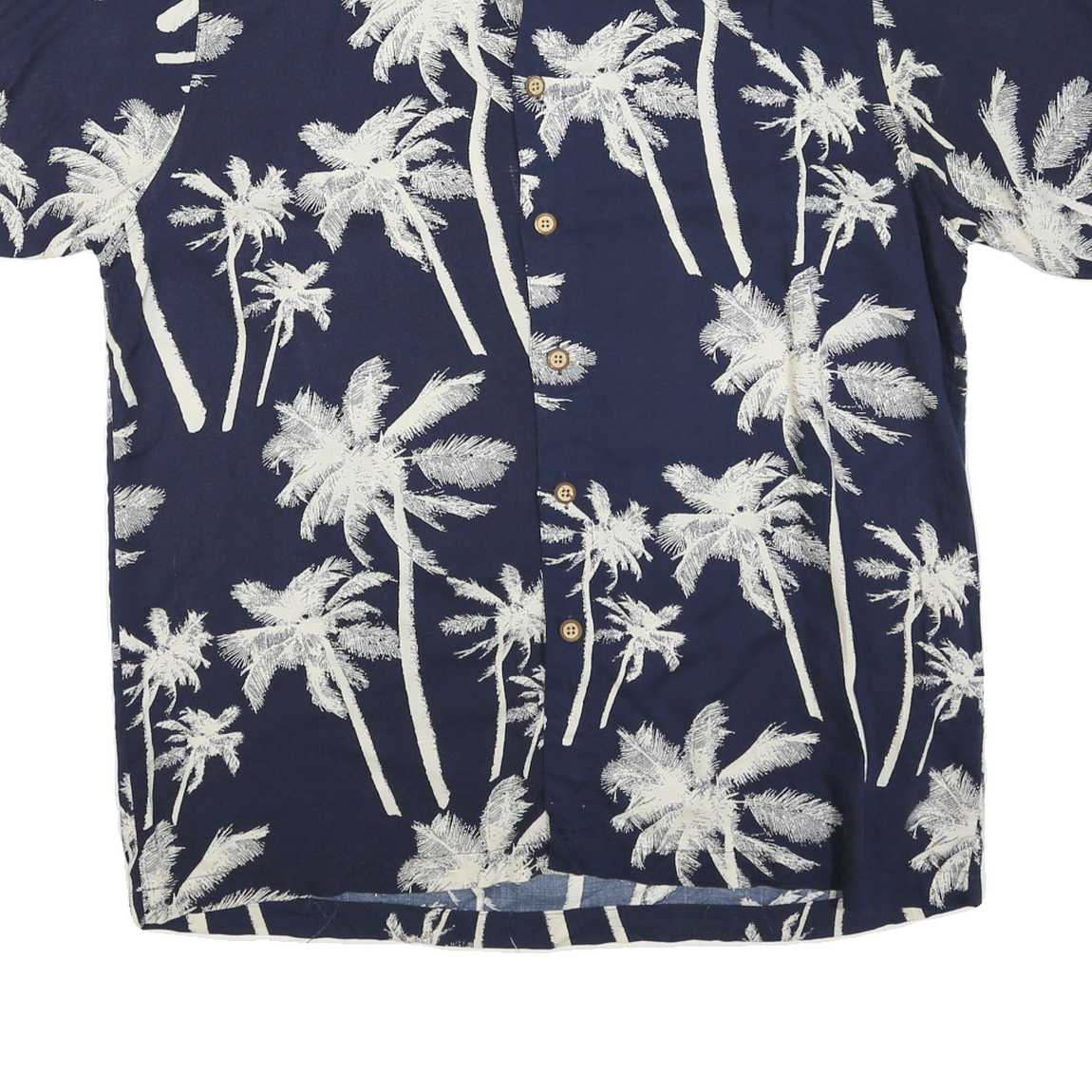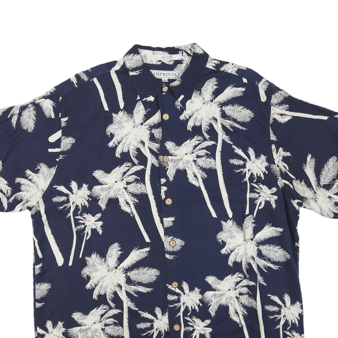 IMPRINTS Mens Navy Blue Palm Tree Print Rayon Shirt L Summer Casual Beachwear