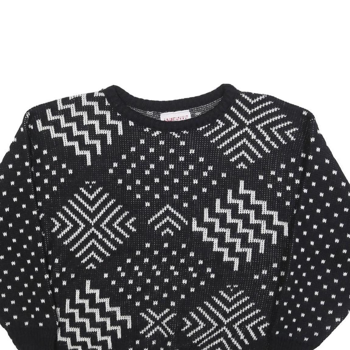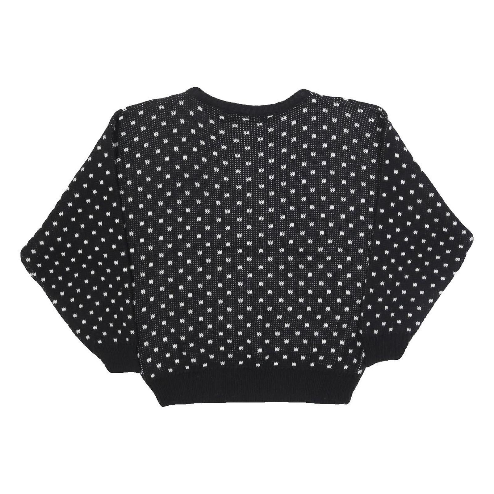 JANENITS Womens Black & White Patterned Jumper Crew Neck Basic Knit S Stylish