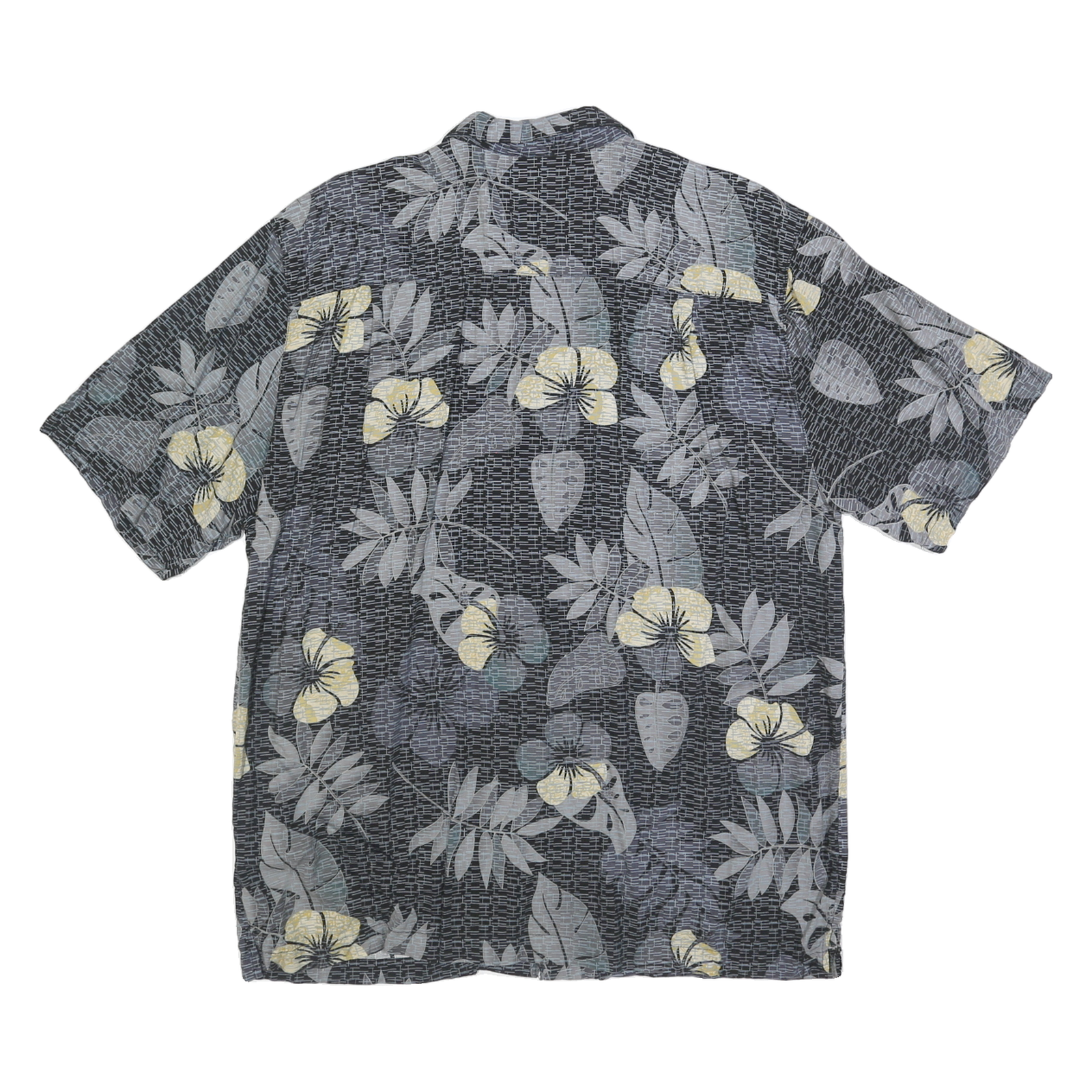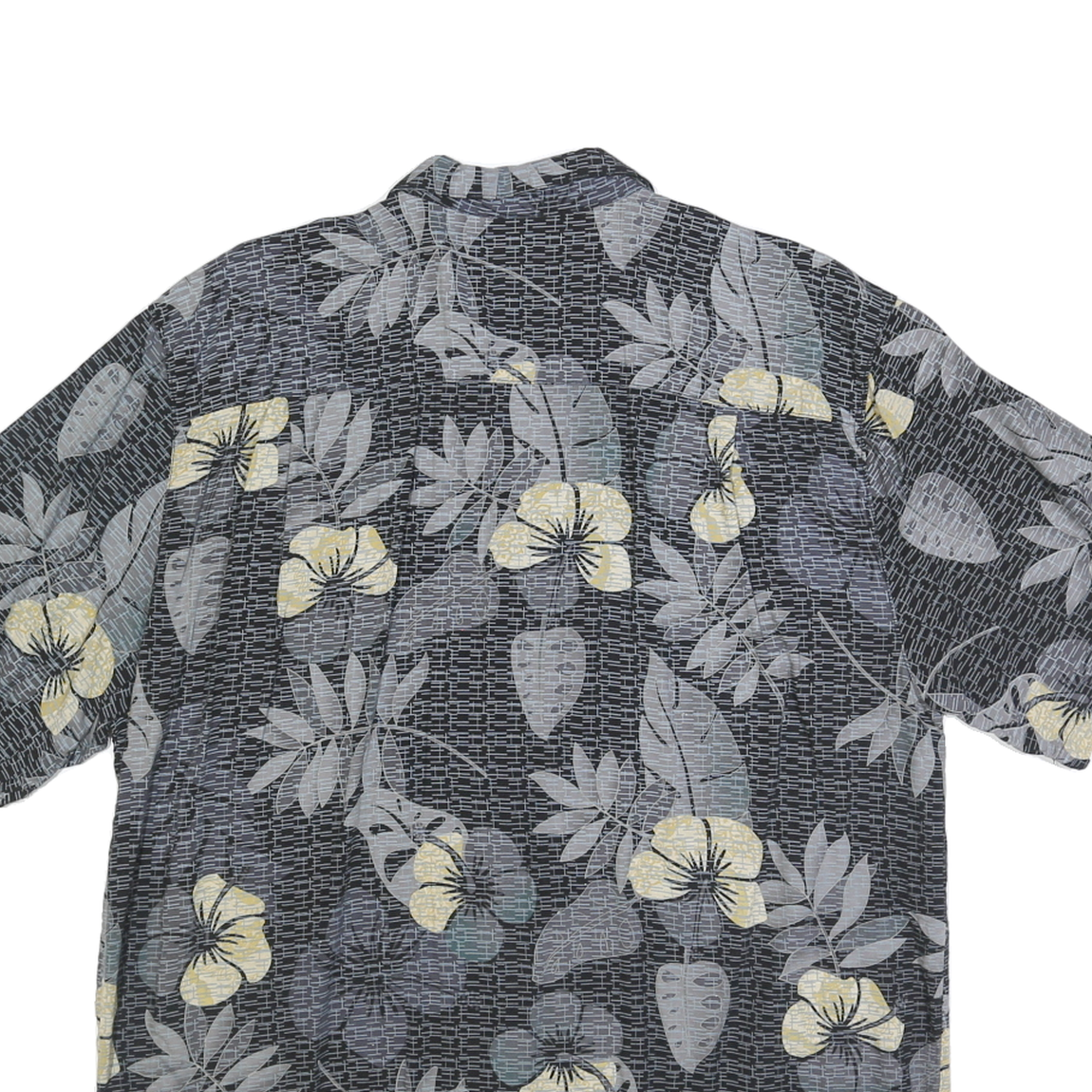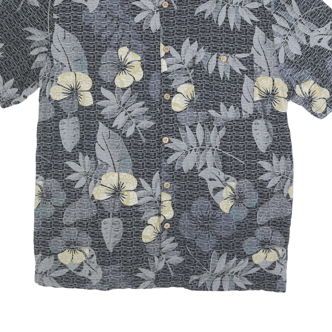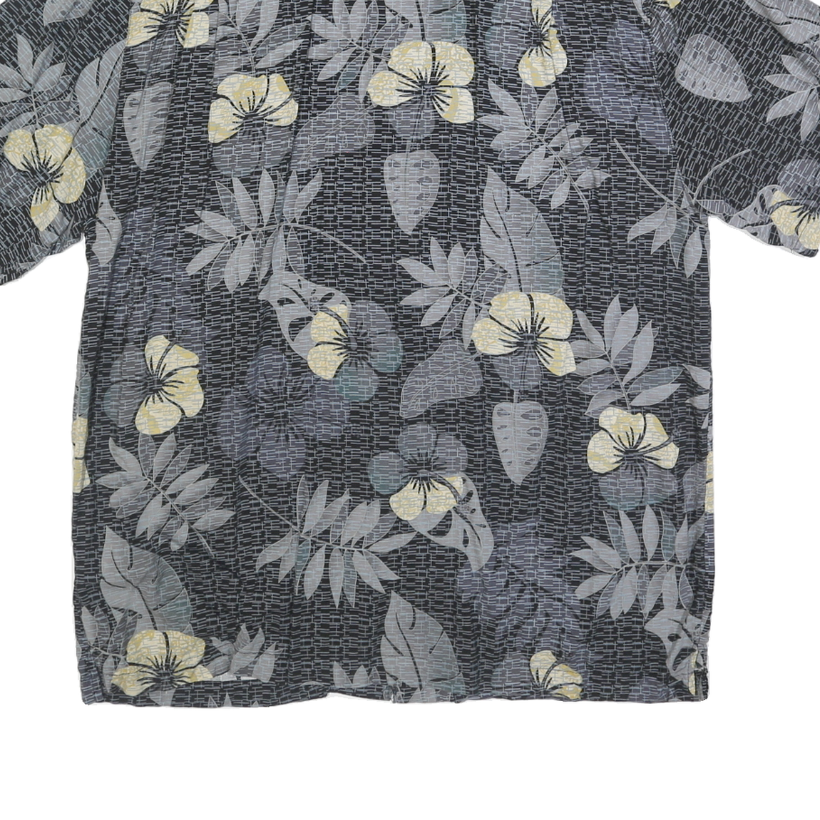 JOE MARLIN Mens Black Grey & Yellow Hawaiian Shirt XL Rayon Summer Casual