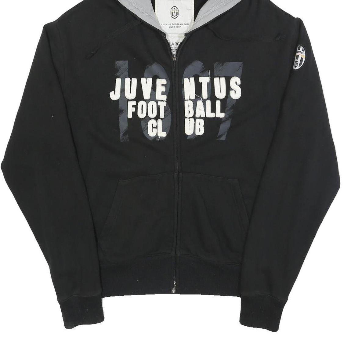 JUVENTUS Mens Black Football Club Full Zip Hoodie L Cotton Blend