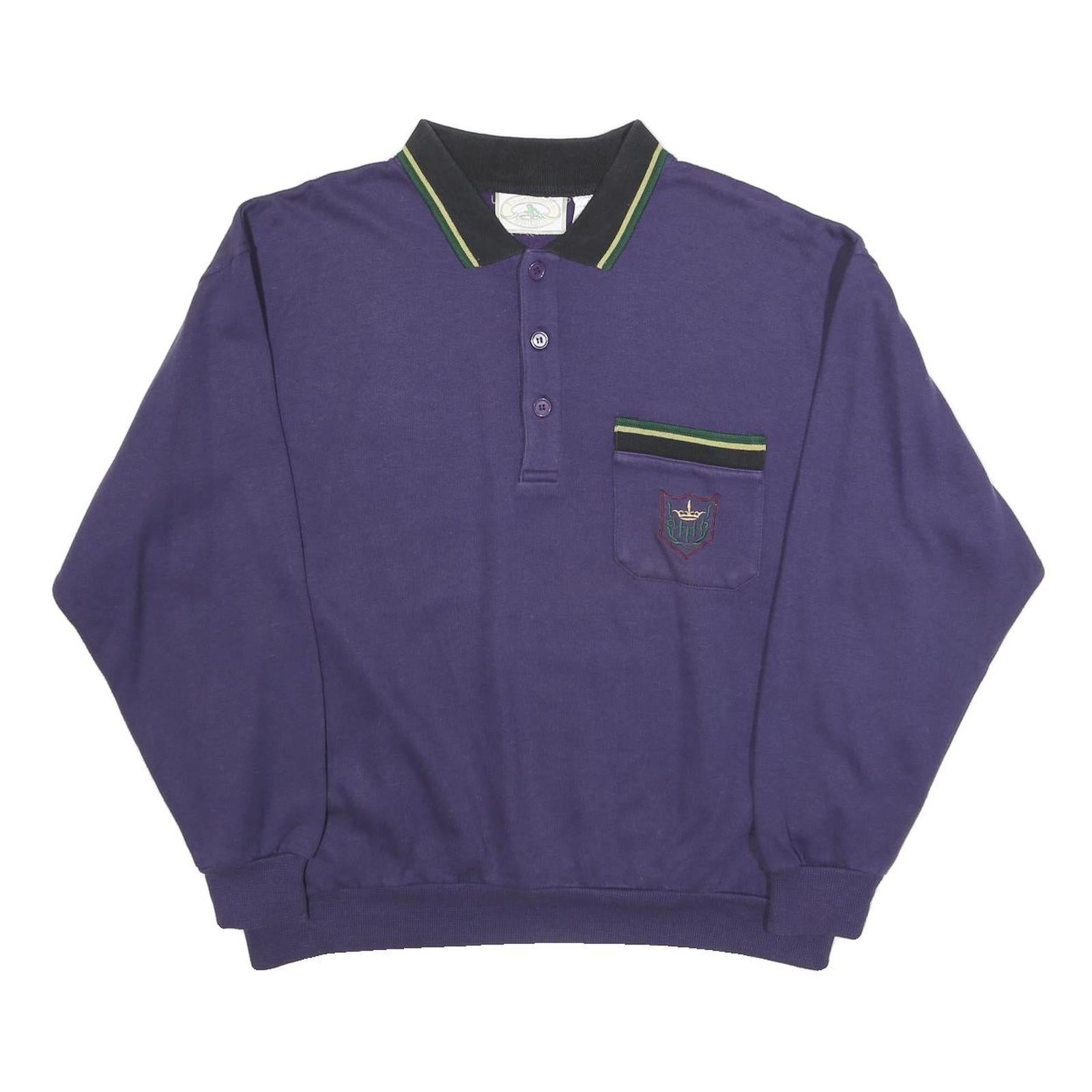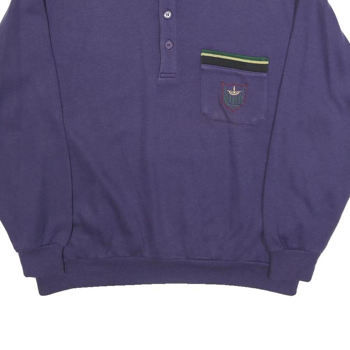 LA GRENOUILLE Mens Blue Polo Collar XL Sweatshirt Cotton Blend Pocket Detail